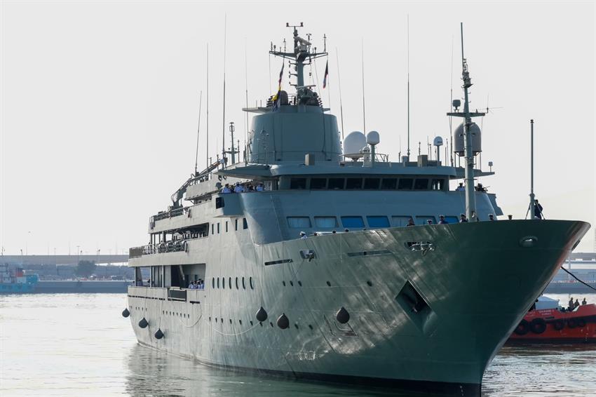سفينة البحرية السلطانية العمانية (المبروكة) ترسو في ميناء الشويخ