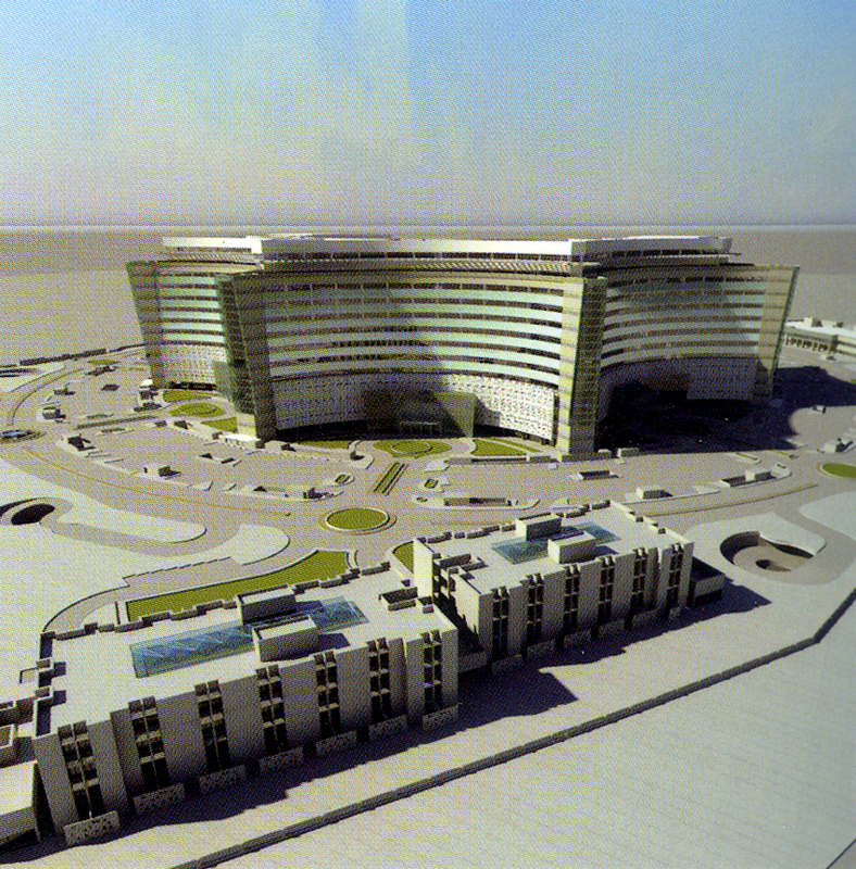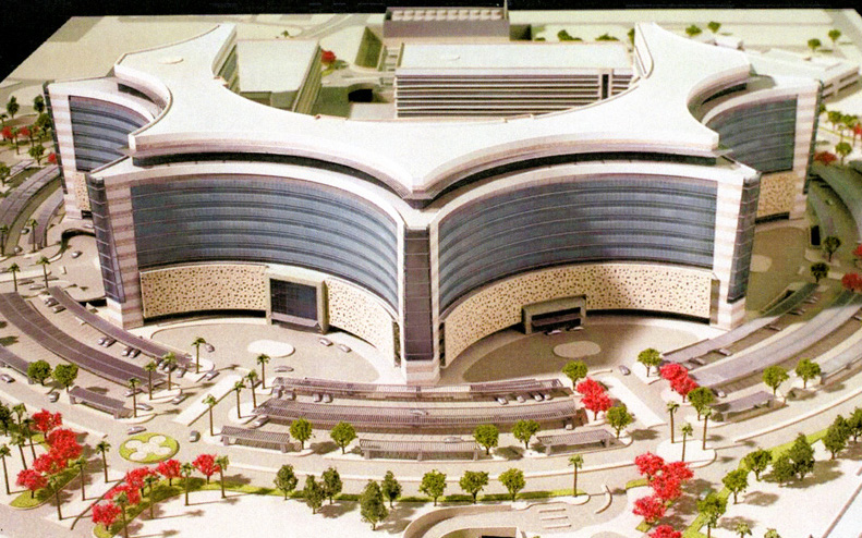 ولن يزيد ارتفاع المستشفى - في الغالب - عن 40 مترا ما عدا الواجهة الامامية التي سيصل ارتفاعها الى 70 مترا وستشمل اجنحة كبار الشخصيات.