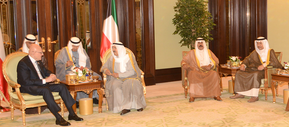 حضرة صاحب السمو امير البلاد الشيخ صباح الاحمد الجابر الصباح حفظه الله ورعاه مستقبلا الرئيس تمام سلام رئيس مجلس الوزراء في الجمهورية اللبنانية الشقيقة