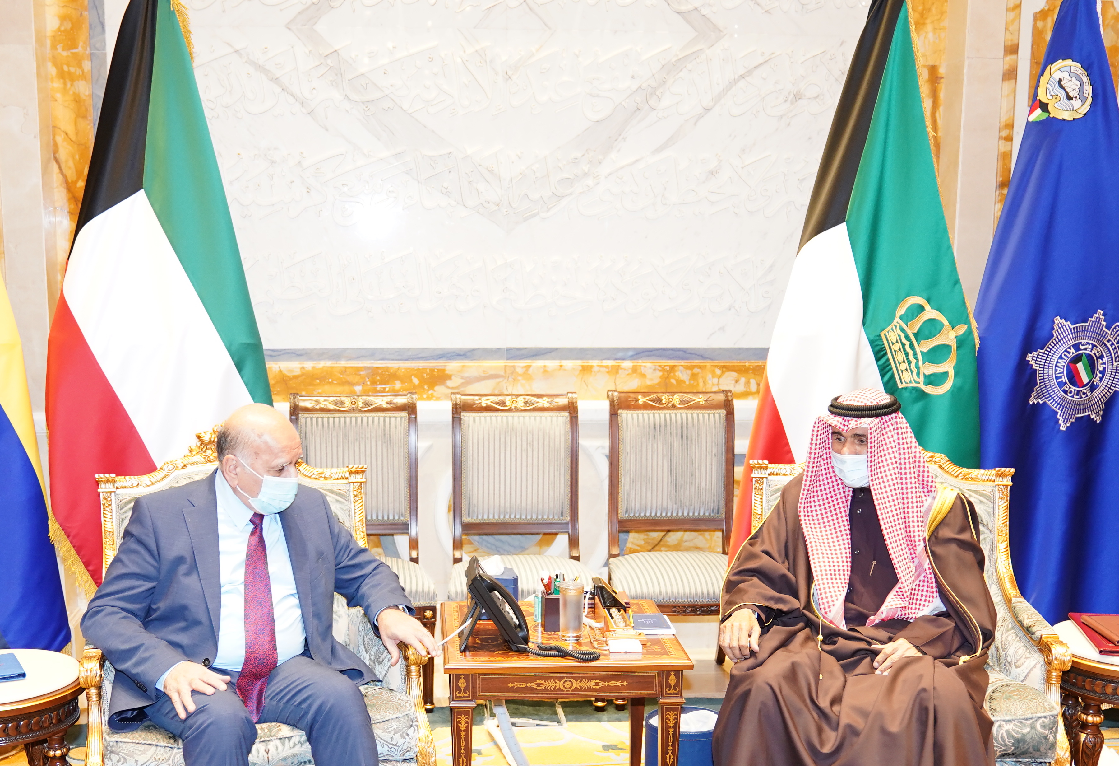 الكويت - 14 - 12 (كونا) -- استقبل حضرة صاحب السمو أمير البلاد الشيخ نواف الأحمد الجابر الصباح حفظه الله ورعاه بقصر بيان صباح اليوم وزير الخارجية بجمهورية العراق الشقيق الدكتور فؤاد محمد حسين ووزير الخارجية الشيخ الدكتور احمد ناصر المحمد الصباح حيث سلم وزير الخارجية بجمهورية العراق سموه رعاه الله رسالة خطية من أخيه رئيس مجلس الوزراء في جمهورية العراق مصطفى الكاظمي تضمنت العلاقات الأخوية التي تربط البلدين والشعبين الشقيقين وسبل تنميتها وتعزيزها في مختلف المجالات وعلى كافة الأصعدة كما تضمنت القضايا ذات الاهتمام المشترك وآخر المستجدات على الساحتين الإقليمية والدولية. (النهاية)