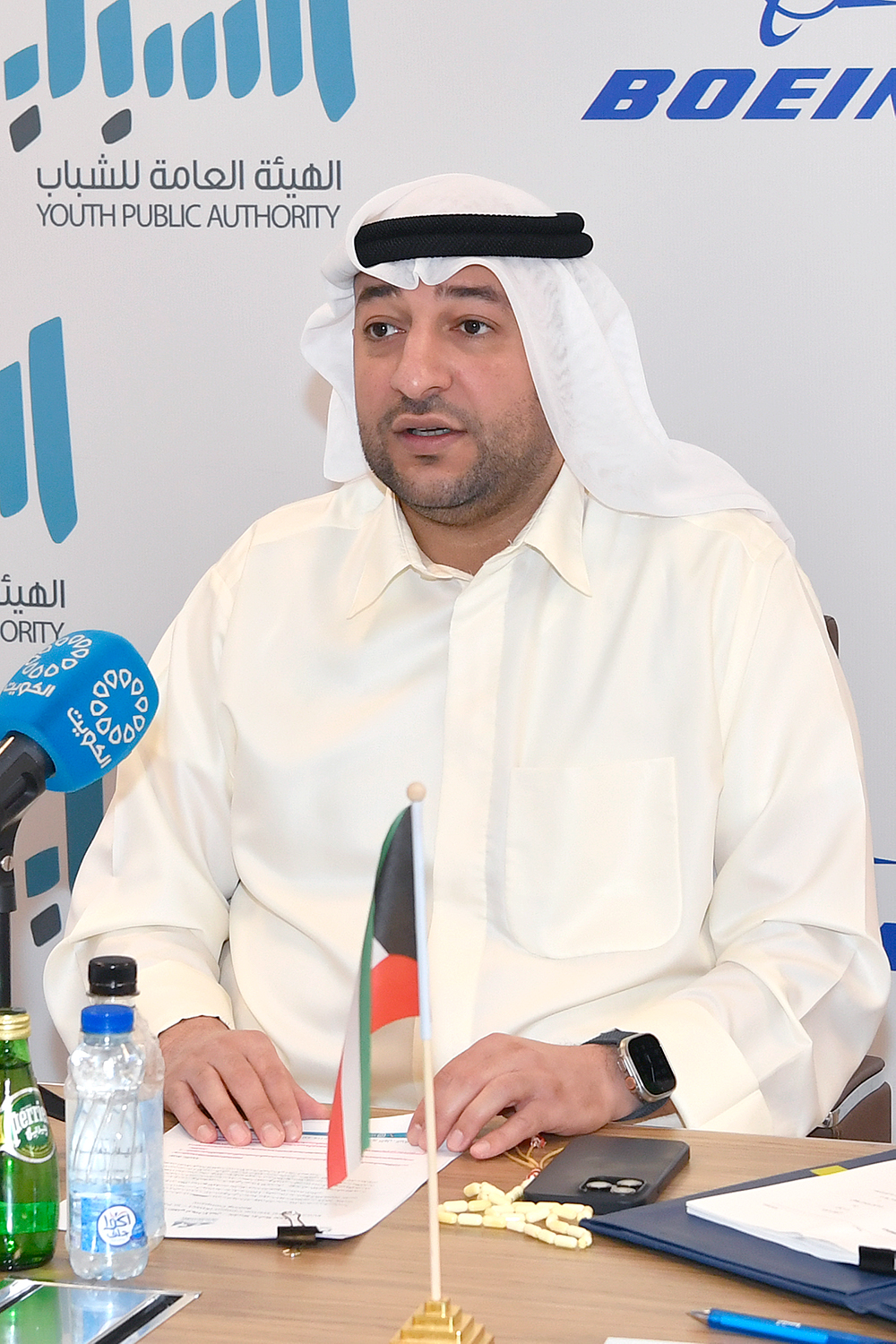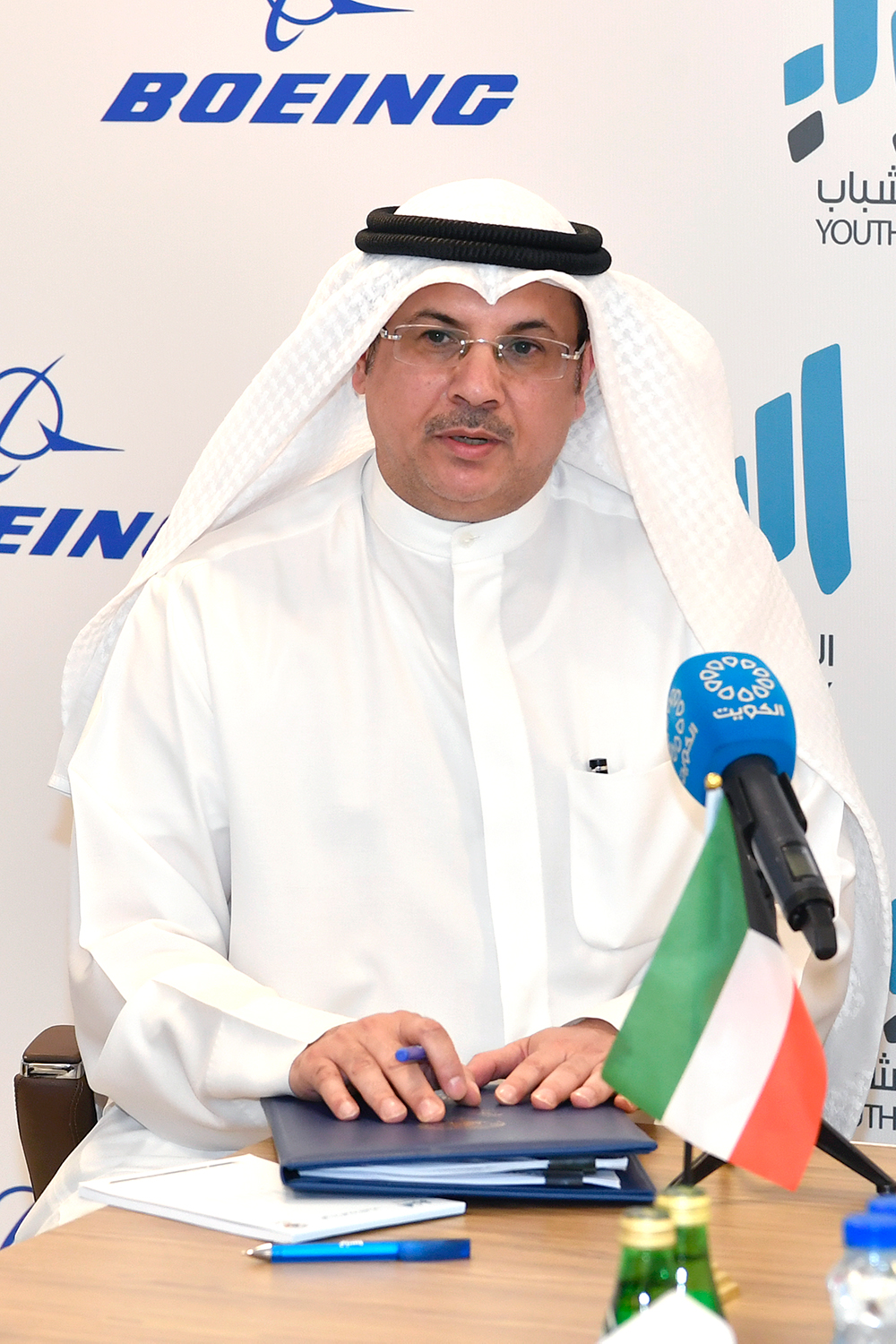 جاء ذلك في كلمة بمناسبة توقيع الهيئة العامة للشباب ممثلة بمديرها العام بالتكليف الدكتور مساعد الكريباني اتفاقية شراكة بهذا الشأن مع (بوينغ) ممثلة بالعضو المنتدب للشركة بالكويت مساعد الهولي لتنفيذ الجزء الخاص بنقل المعرفة ضمن المشروع المقرر اقامته في ضاحية مبارك العبدالله بحضور الوزير معرفي.