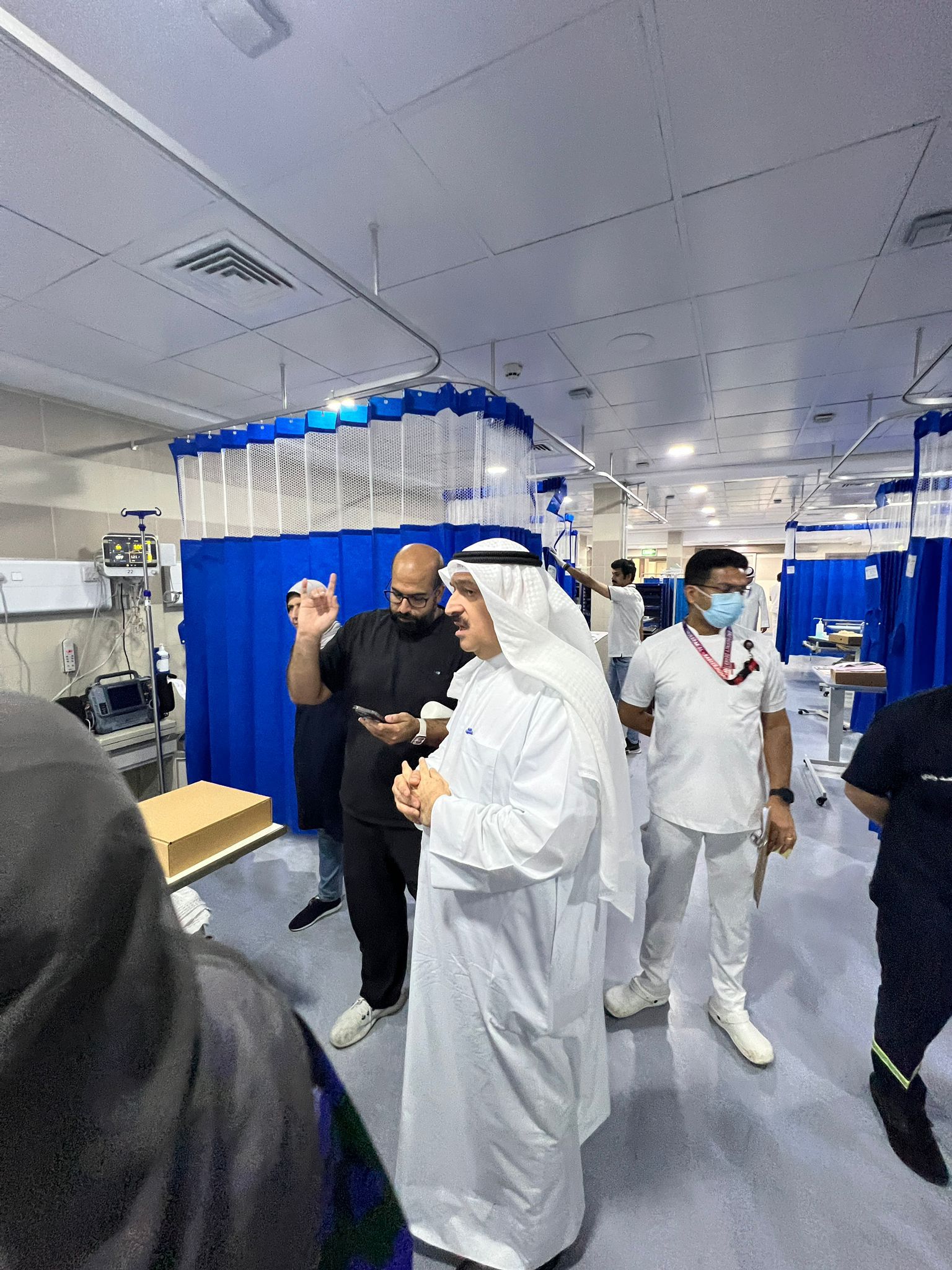 وتفقد وكيل وزارة الداخلية الفريق الشيخ سالم نواف الأحمد الصباح مستشفى مبارك للاطمئنان على المصابين واستمع من المسؤولين عن أوضاعهم.