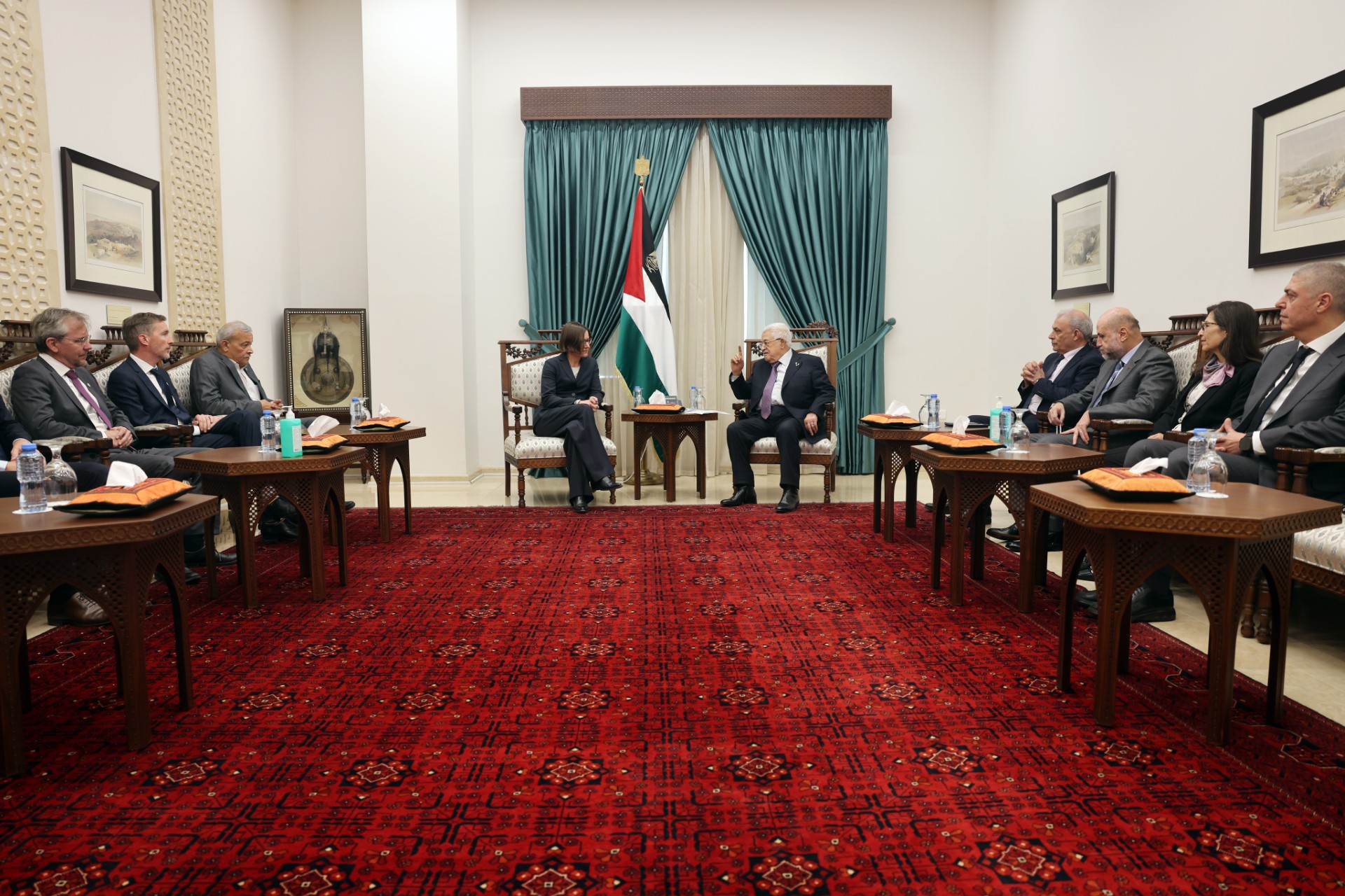 الرئيس الفلسطيني محمود عباس خلال استقباله رئيسة اللجنة الدولية للصليب الأحمر ميريانا سيبولياريتش