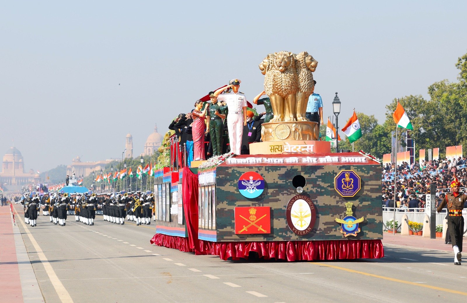 وشارك في عرض عسكري خلال الاحتفالات أفراد من القوات العسكرية وشبه العسكرية والفرق الموسيقية العسكرية لإظهار قوة الهند العسكرية إضافة إلى عرض ثقافي يمثل الولايات الهندية بما يعكس تنوع ثقافات الدولة ومراحل تطور الحياة عبر العصور.