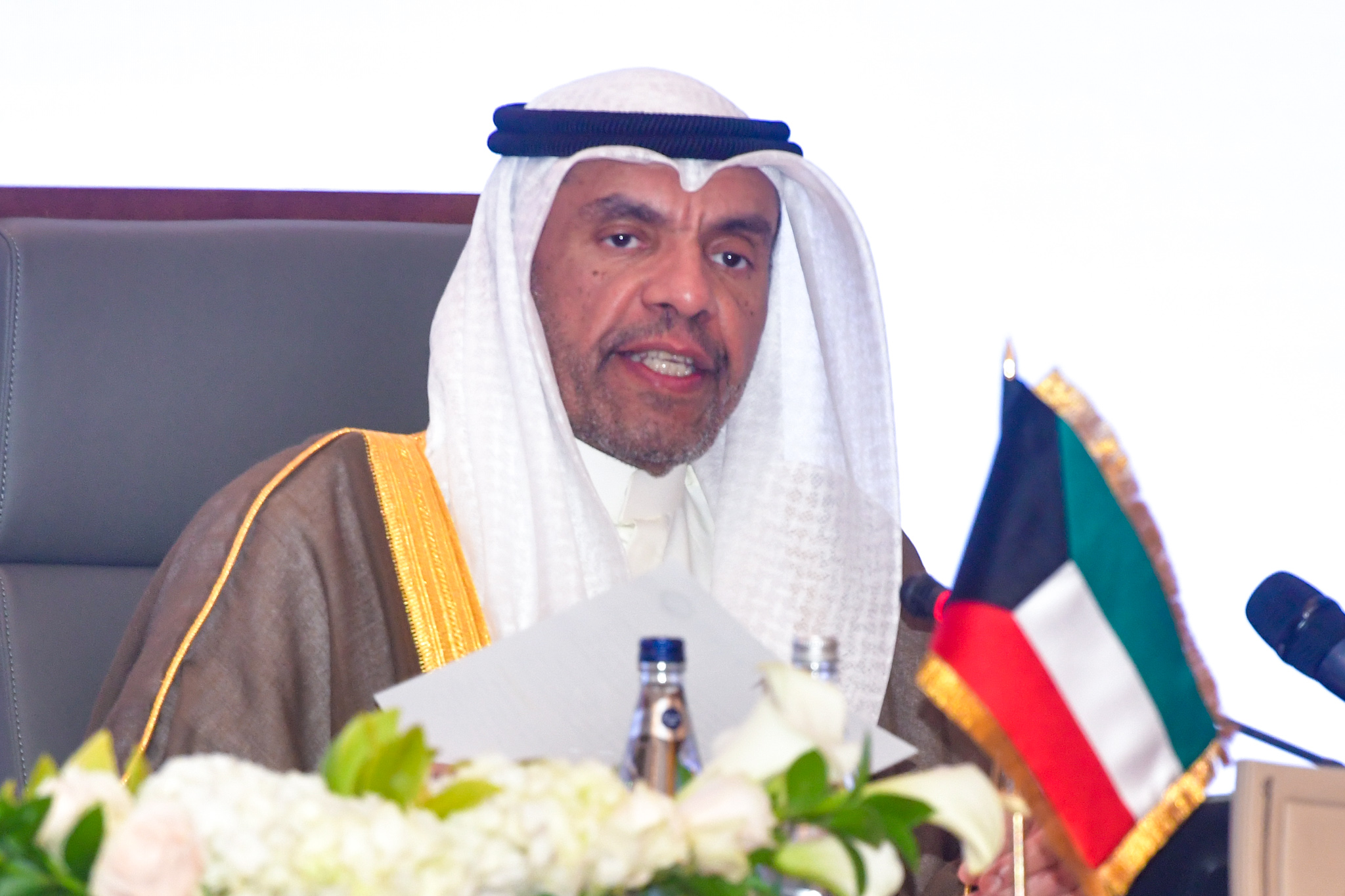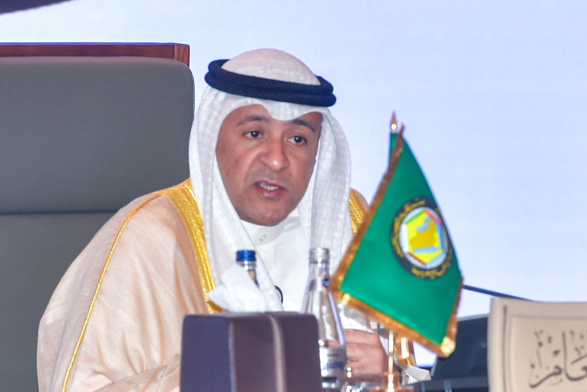 بدوره رفع الأمين العام لمجلس التعاون لدول الخليج العربية جاسم البديوي في كلمته خلال المؤتمر أسمى آيات الشكر والتقدير لمقام حضرة صاحب السمو أمير البلاد الشيخ مشعل الأحمد الجابر الصباح حفظه الله ورعاه رئيس الدورة الحالية للمجلس الأعلى على دعمه الكبير لمسيرة العمل الخليجي المشترك كما توجه بالشكر إلى وزير الخارجية عبدالله اليحيا على كرم الضيافة وحفاوة الاستقبال.