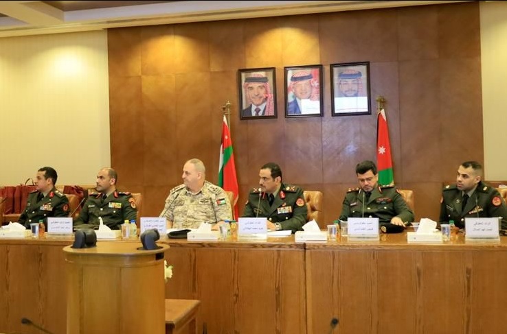 رئيس (هيئة القضاء العسكري) اللواء حقوقي عويد الهطلاني خلال المباحثات في مديرية القضاء العسكري بالجيش الأردني