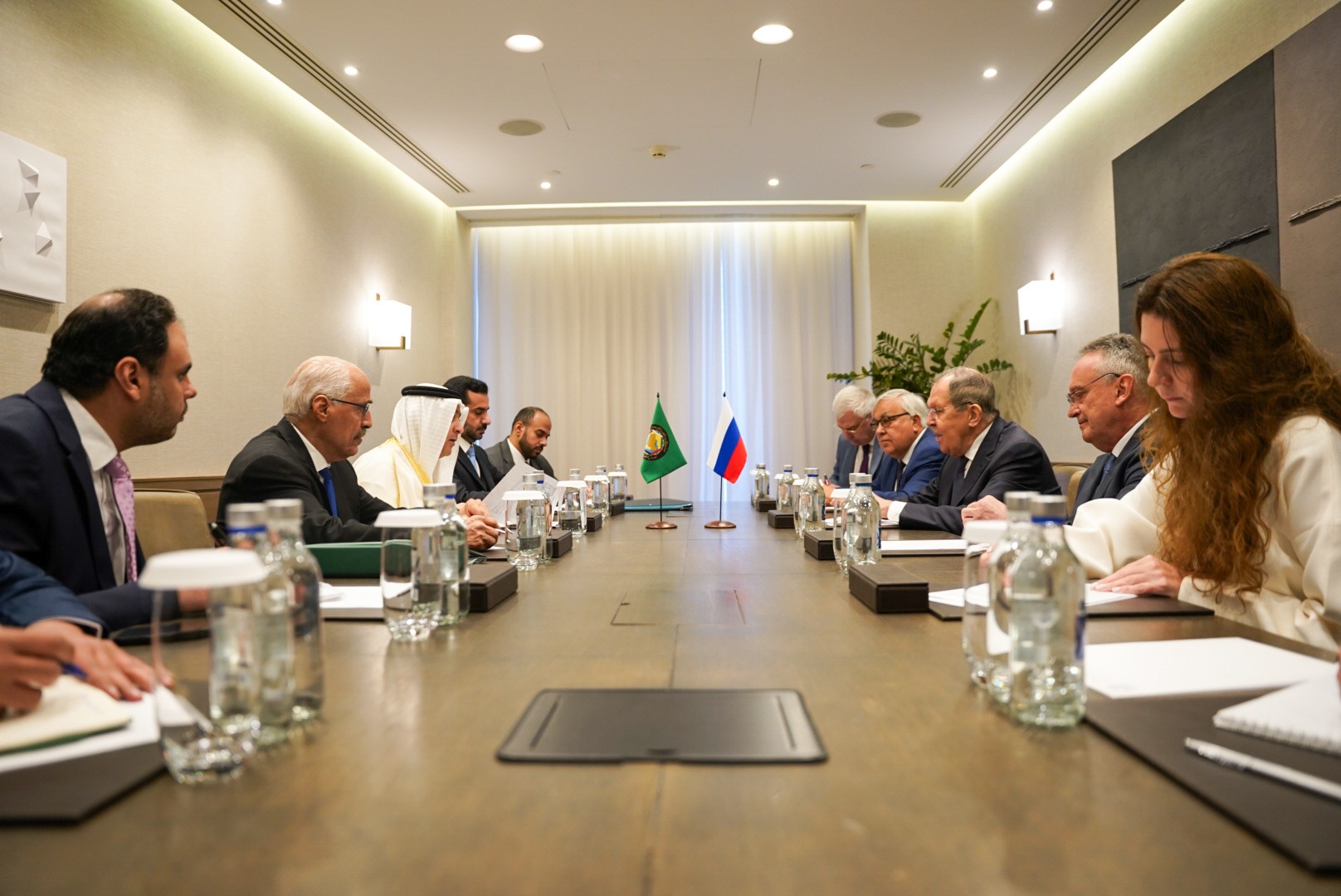 الأمين العام لمجلس التعاون لدول الخليج العربية جاسم البديوي ووزير الخارجية الروسي سيرغي لافروف يبحثان التعاون المشترك وتطورات الأحداث بالمنطقة