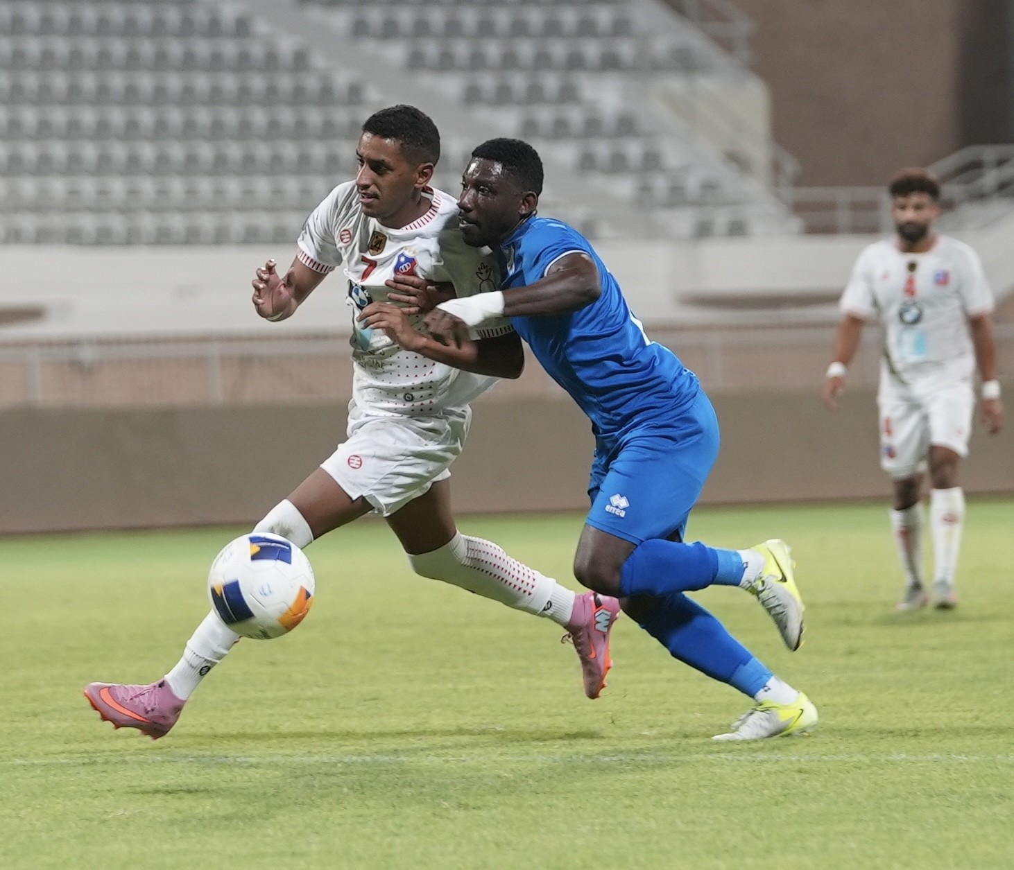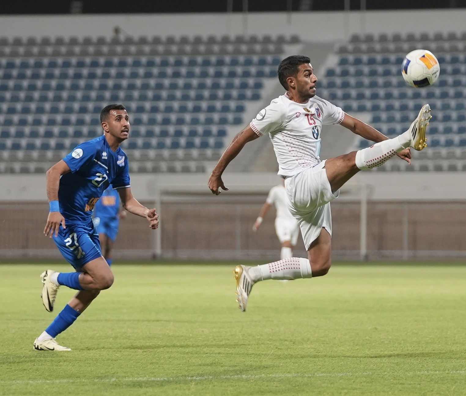 لاعب الكويت ينطلق بالكرة وسط ملاحقة من لاعبي التضامن