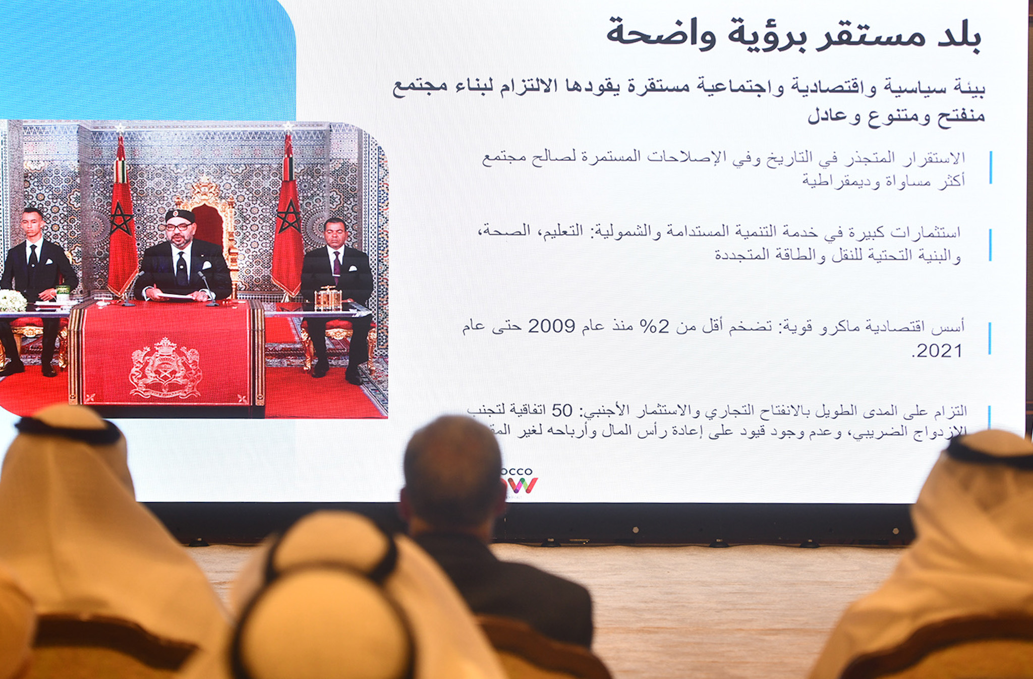 وأعرب عن اعتقاده بوجود فرصة استثمار تجارية سانحة لدى المؤسسات الاقتصادية ورجال الأعمال "بالنظر إلى ما يحققه المغرب من تقدم ملموس بمختلف المستويات في المشاريع المستقبلية" مشيرا إلى استضافة وتنظيم (كأس العالم 2030) بشراكة مع اسبانيا والبرتغال وما يوفره من فرص استثمارية ضخمة تتعلق بتحسين البنية التحتية.
