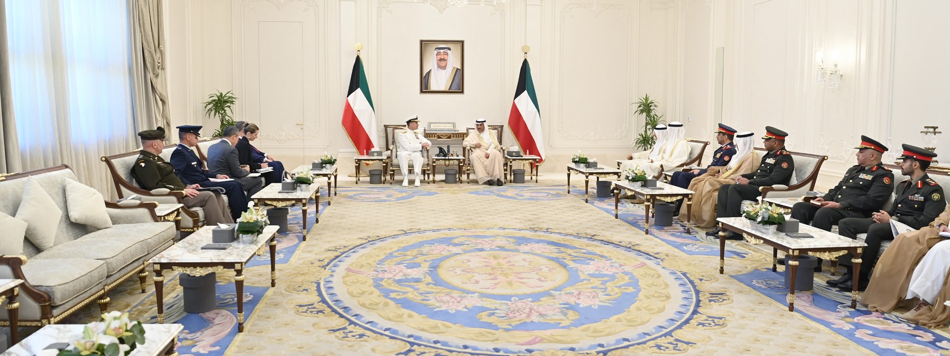 سمو ولي العهد الشيخ صباح خالد الحمد الصباح مستقبلا قائد القيادة الأمريكية الوسطى الفريق أول بحري براد كوبر
