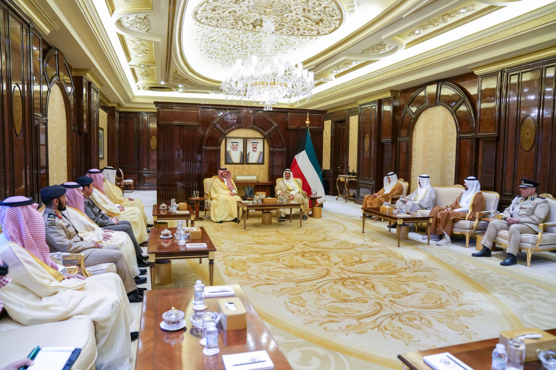 سمو رئيس مجلس الوزراء الشيخ أحمد عبدالله الأحمد الصباح مستقبلا وزير الداخلية السعودي صاحب السمو الملكي الأمير عبدالعزيز بن سعود بن نايف بن عبدالعزيز آل سعود