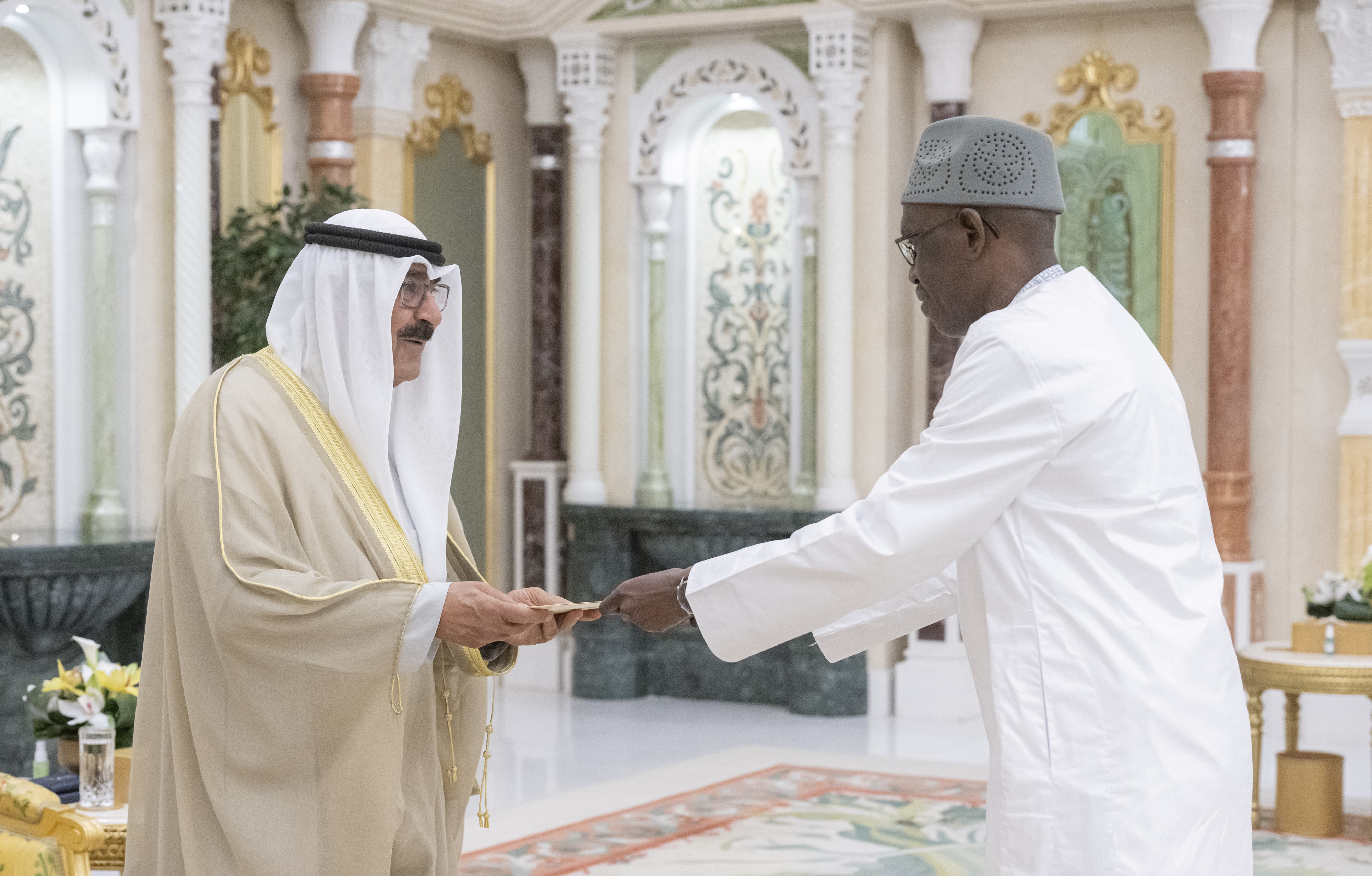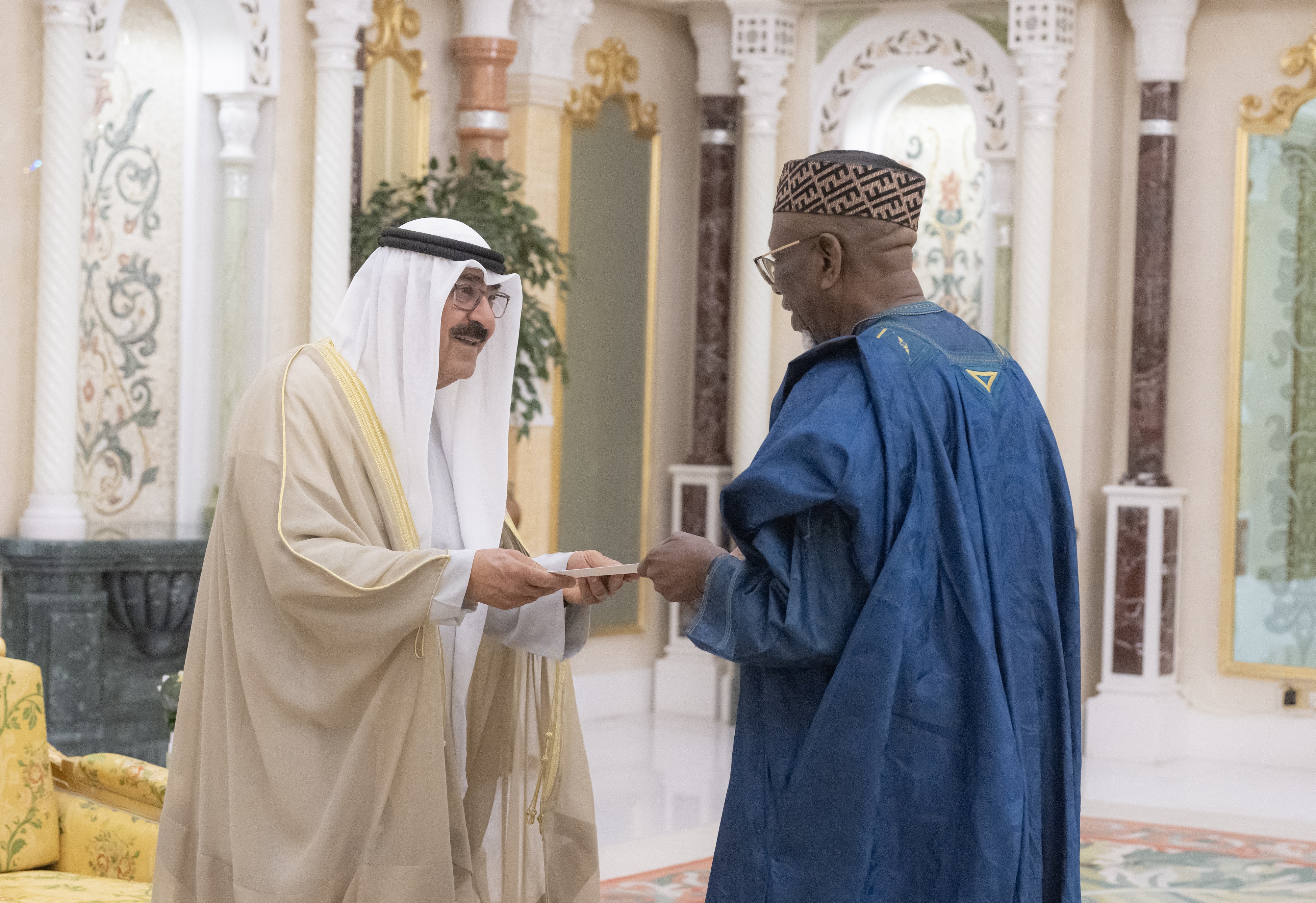 الكويت - 16 - 9 (كونا) -- احتفل في قصر بيان صباح اليوم بتسلم حضرة صاحب السمو أمير البلاد الشيخ مشعل الأحمد الجابر الصباح حفظه الله ورعاه أوراق اعتماد كل من السفير د. آدم عبده حسن سفيرا لجمهورية النيجر والسفير د. براهيما دياكيتي كابا سفيرا لجمهورية ليبيريا والسفير باديرو أغيمون سفيرا لجمهورية بنين والسفير ميشال جوليوا سفيرا لجمهورية بولندا والسفير حسن سوغو سفيرا لجمهورية السنغال وذلك كسفراء لبلادهم لدى دولة الكويت.