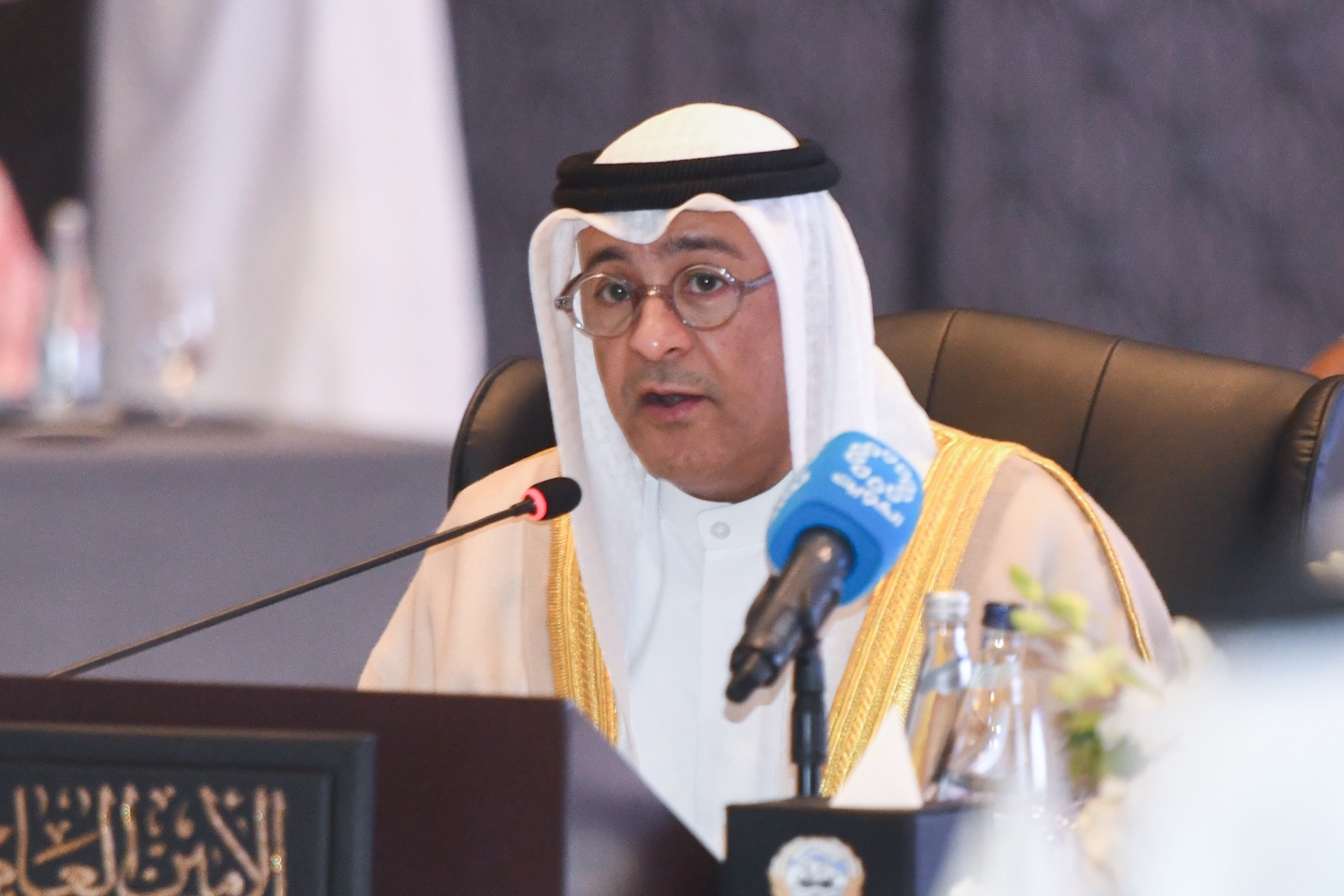 من جهته رحب الأمين العام لمجلس التعاون لدول الخليج العربية جاسم البديوي في كلمة مماثلة بالمشاركين ورفع باسمهم جميعا أسمى آيات الشكر والتقدير والامتنان لمقام حضرة صاحب السمو أمير البلاد الشيخ مشعل الأحمد الجابر الصباح حفظه الله ورعاه لاستضافة دولة الكويت هذا الاجتماع ولما قدمته وتقدمه من تسهيلات ومساندة لإنجاح أعمال مجلس التعاون ولما يلقاه العمل الخليجي المشترك من دعم واهتمام من لدن سموه وإخوانه قادة دول المجلس حفظهم الله ورعاهم في كافة الميادين.