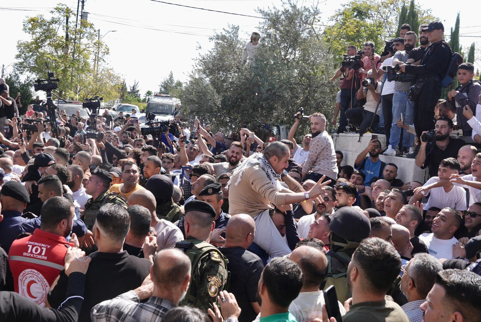 لحظة وصول الأسرى الفلسطينيين المفرج عنهم مدينة رام الله