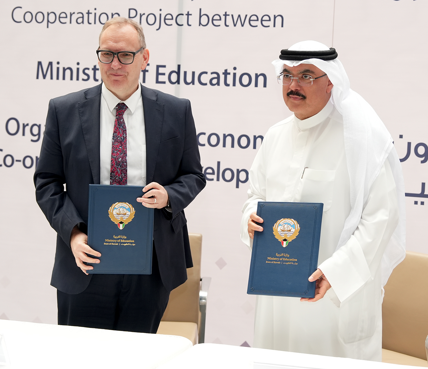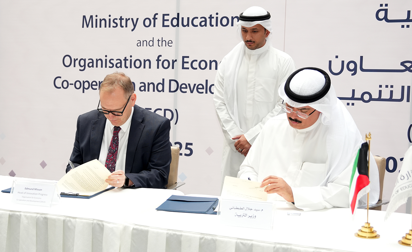 الكويت - 20 - 10 (كونا) -— نظمت وزارة التربية اليوم الاثنين حفل إطلاق مشروع التعاون بين الوزارة ومنظمة التعاون الاقتصادي والتنمية (OECD) بحضور وزير التربية المهندس سيد جلال الطبطبائي ووفد من المنظمة من (إدارة التعليم والمهارات) الذي ضم كلا من رئيس قسم الابتكار وقياس التقدم إدموند ميسون ومحلل السياسات ماركو كولز ومحللة السياسات أديلينا بوبليتي.