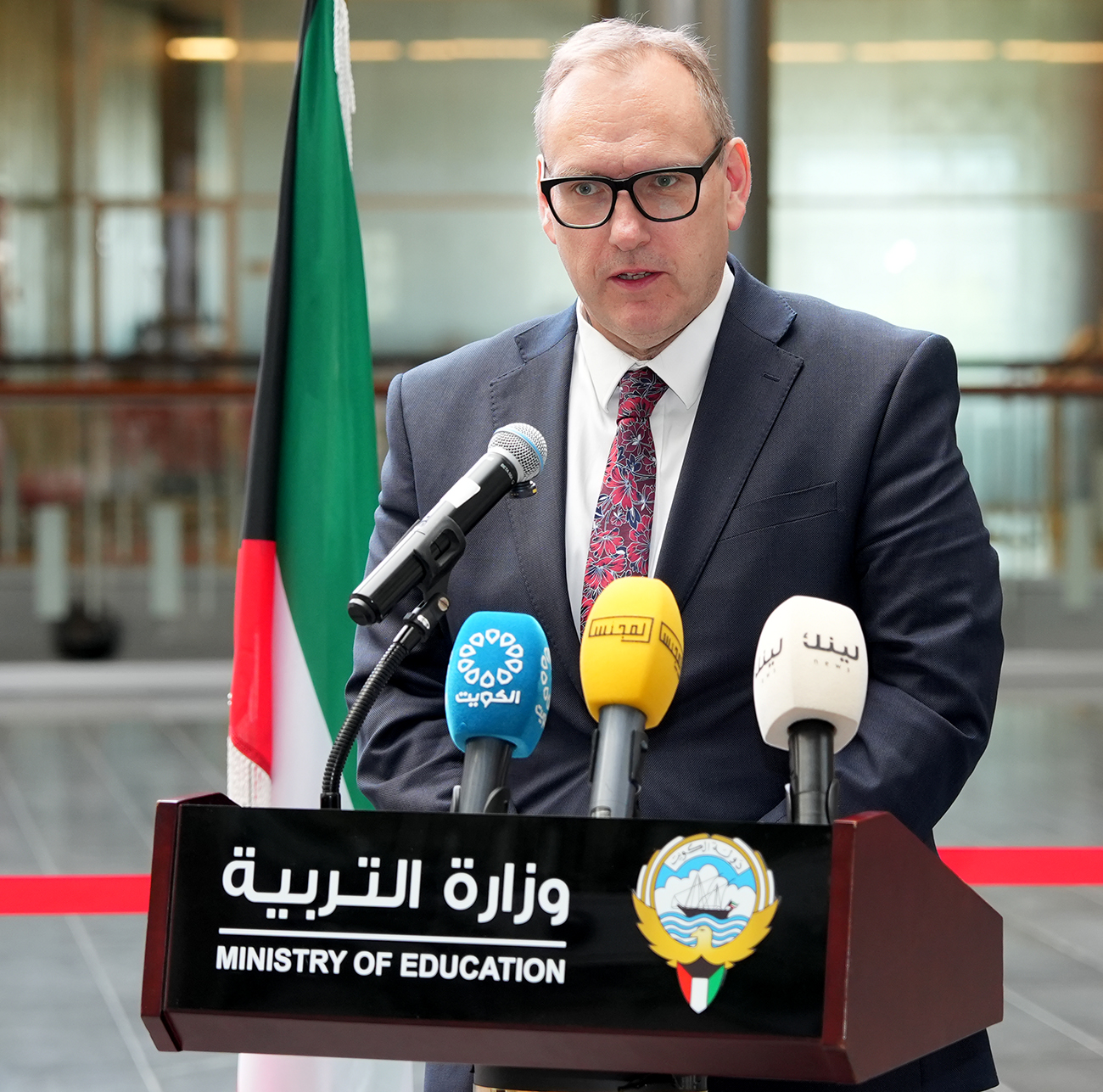 وأكد الوزير الطبطبائي في كلمة بافتتاح الحفل إن هذا التعاون يمثل محطة فارقة في مسيرة التعليم في البلاد مشيدا بالدعم الكبير والرؤية الحكيمة للقيادة السياسية الرشيدة التي جعلت التعليم قضية وطنية وركيزة أساسية في بناء الإنسان الكويتي.