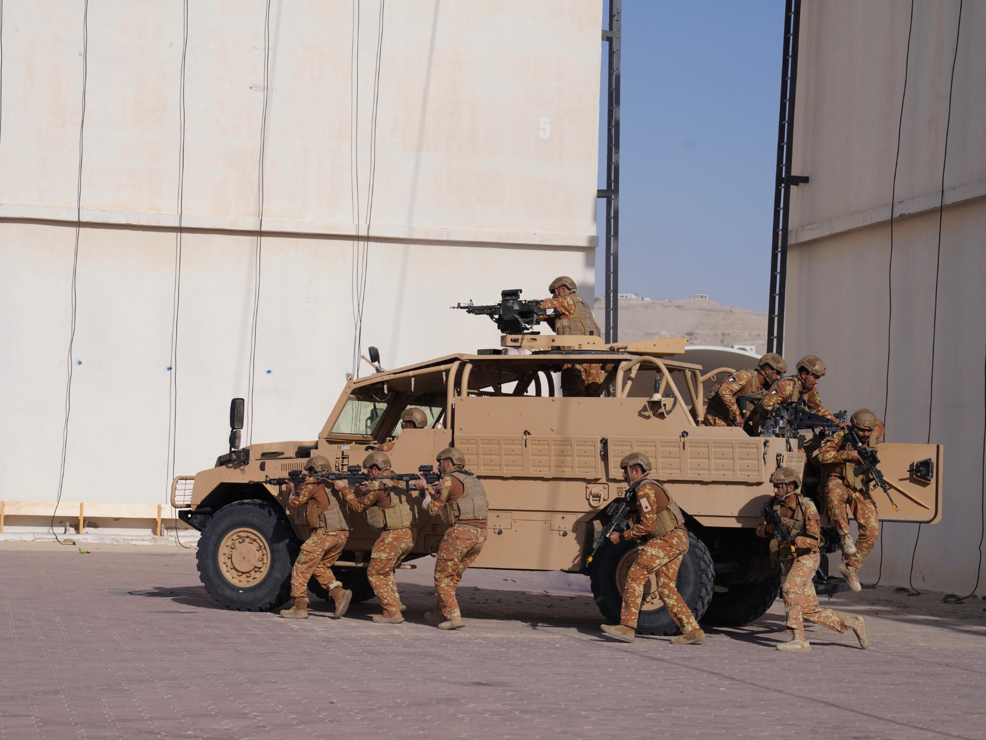 وذكر البيان أن الفريق الركن الشريعان شاهد خلال الزيارة عرضا ميدانيا لتمارين القتال في المناطق المبنية اشتمل على تنفيذ عدد من الفرضيات العملية التي تحاكي بيئات القتال المختلفة بهدف رفع مستوى التنسيق والدقة في الأداء وتطوير أساليب العمل الميداني حيث أشاد بما شاهده من تنظيم متميز ومستوى متقدم لتنفيذ تلك التمارين.