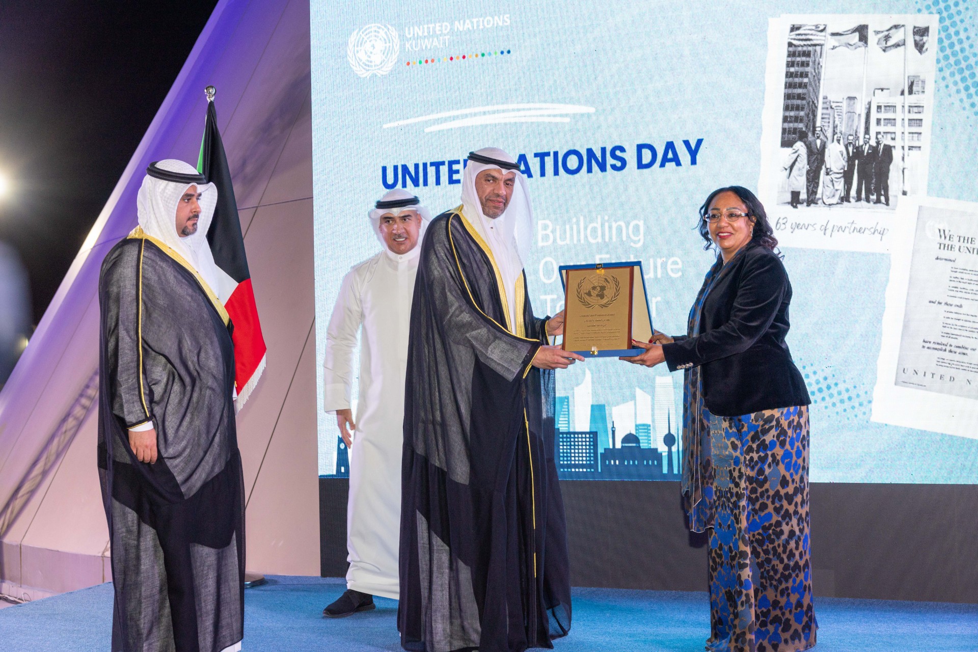 من جانبها قالت ممثل الأمين العام للأمم المتحدة المنسق المقيم لدى دولة الكويت غادة الطاهر في كلمة مماثلة إن دولة الكويت تمثل نموذجا راسخا للشراكة متعددة الأطراف والتعاون الإنساني العالمي مشيدة بدورها البارز في دعم جهود السلام والتنمية المستدامة.