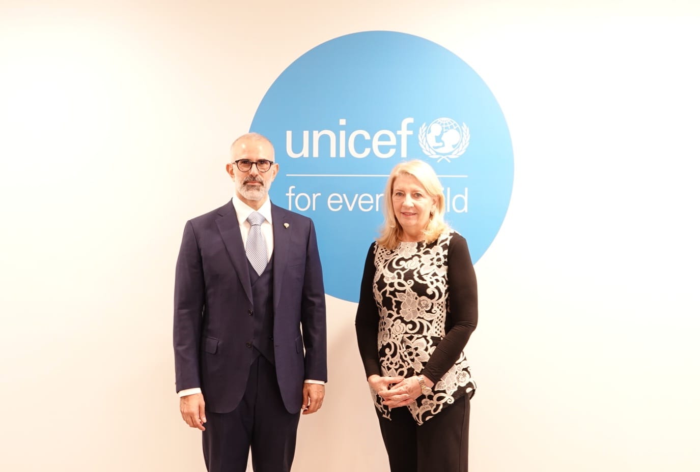 وتناول الحوار الشراكة الإستراتيجية بين دولة الكويت واليونيسف وما تشكله من نموذج للتضامن في خدمة الطفولة والإنسانية ودور دولة الكويت التاريخي في تقديم الدعم لمشاريع اليونيسف في قطاعات تنموية محورية للأطفال في مقدمتها التعليم والصحة والتغذية والمياه والصرف الصحي.