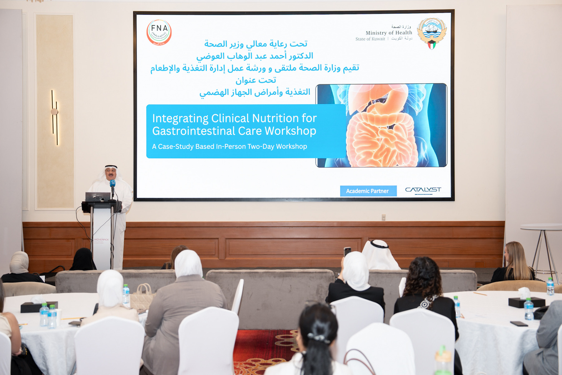 وأضاف أن الورشة تهدف إلى تعزيز الفهم العلمي المتين لأمراض الجهاز الهضمي ودور التغذية العلاجية في مختلف مراحل الرعاية والعلاج إضافة إلى تبادل الخبرات ومناقشة أحدث المستجدات البحثية وتطبيقاتها للارتقاء بجودة الرعاية الصحية في دولة الكويت.