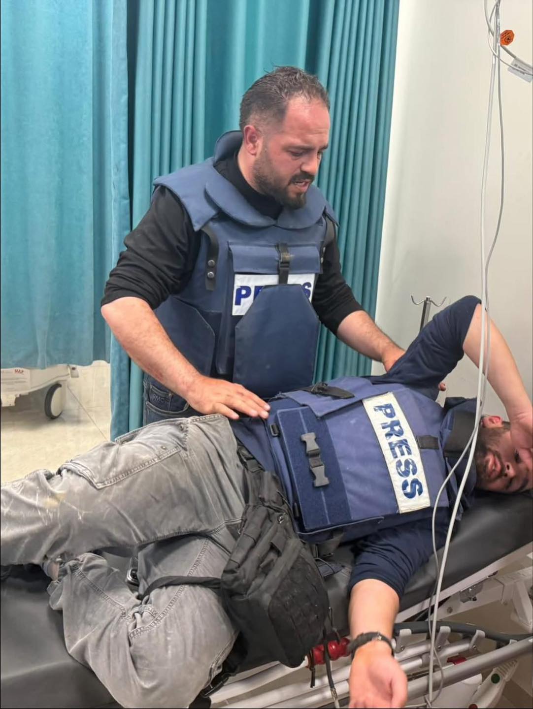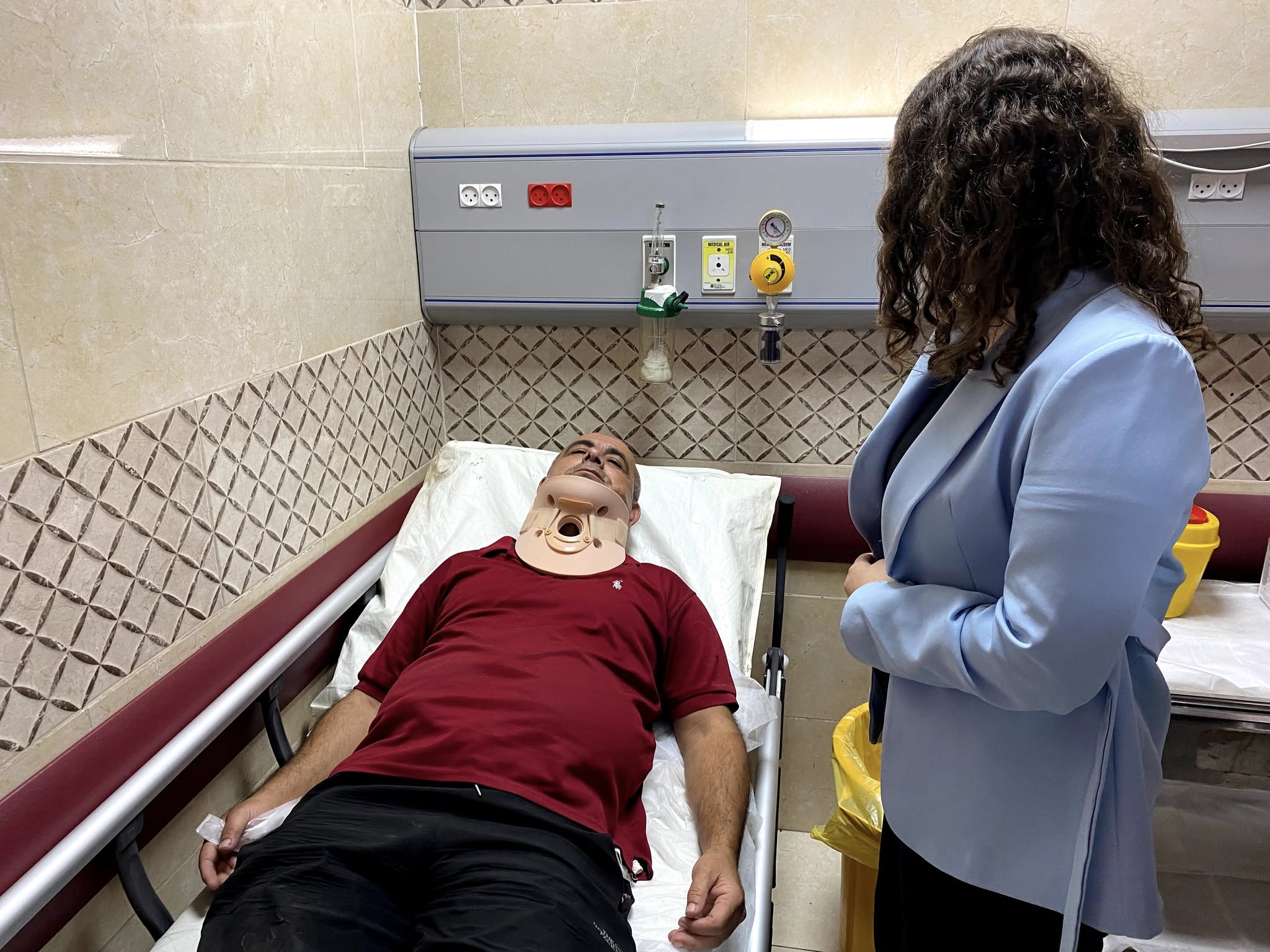 صحفيون في المستشفى خلال تلقيهم العلاج بعد الاعتداء عليهم من قبل المستوطنين