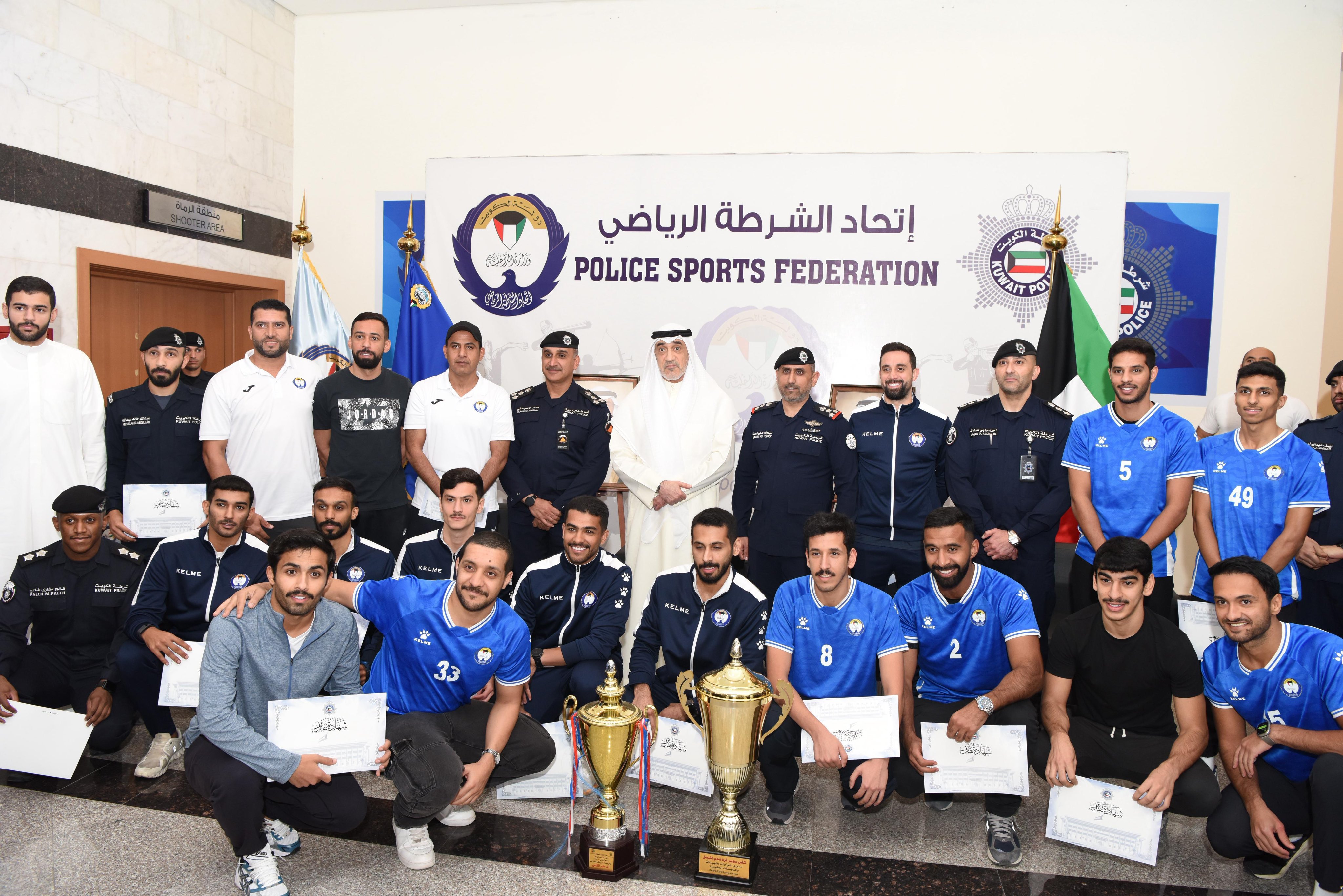 ووفق البيان فإن الحفل الذي جاء تحت رعاية وحضور النائب الأول لرئيس مجلس الوزراء ووزير الداخلية شهد حضور رئيس مجلس إدارة اتحاد الشرطة الرياضي العميد ركن بحري الشيخ مبارك علي الصباح.