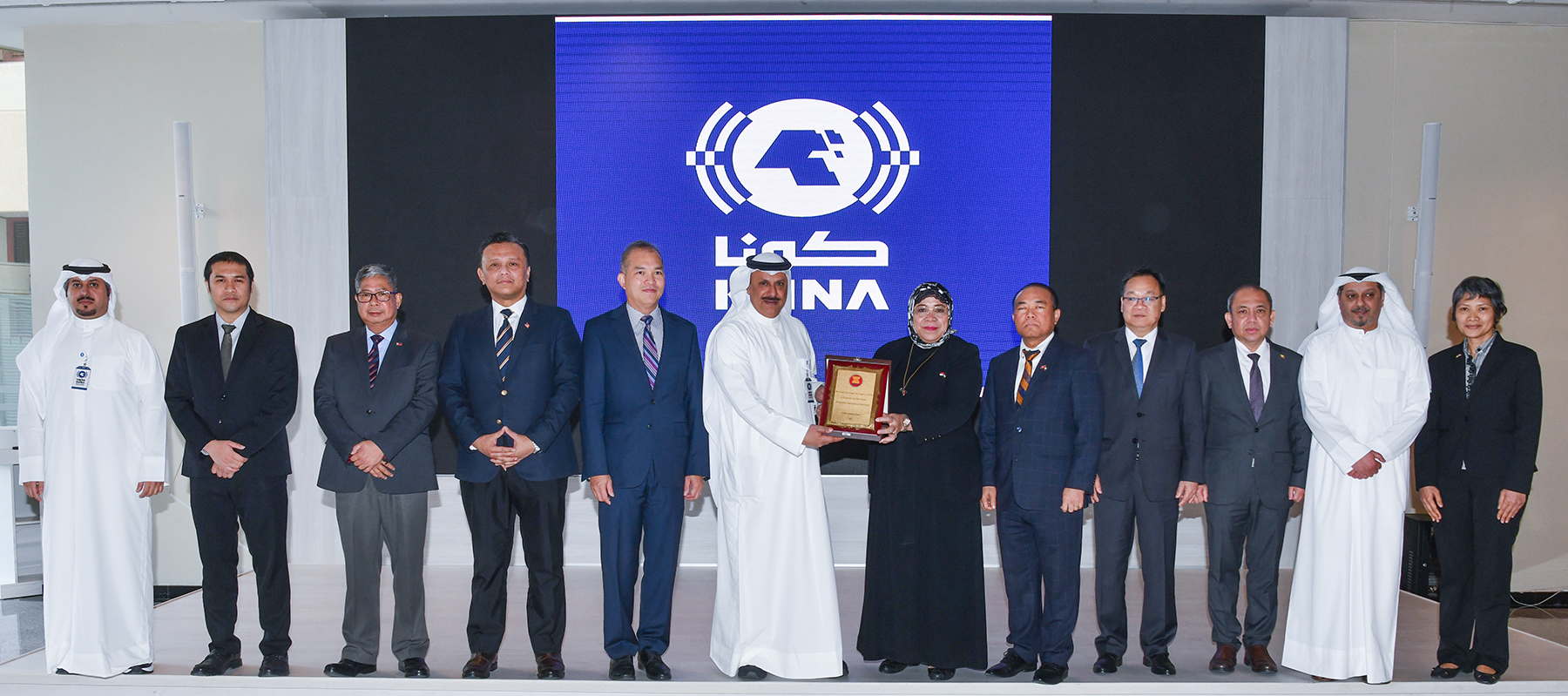 المدير العام لوكالة الأنباء الكويتية بالتكليف محمد المناعي ونائب المدير العام لقطاع التحرير عصام الغانم ورئيس التحرير بالتكليف محمد البحر مع سفراء (آسيان) لدى البلاد