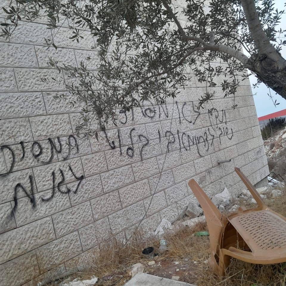 وفي السياق ذاته قال شهود عيان إن المستوطنين أضرموا النيران في مسجد الحاجة (حميدة) وكتبوا شعارات عنصرية على جدرانه.