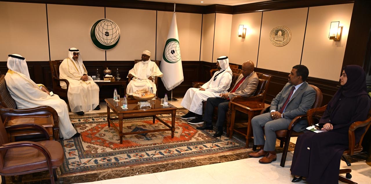 القنصل العام لدولة الكويت في مدينة جدة ومندوبها الدائم لدى منظمة التعاون الإسلامي يوسف التنيب خلال لقاء بأمين عام منظمة التعاون الإسلامي حسين طه