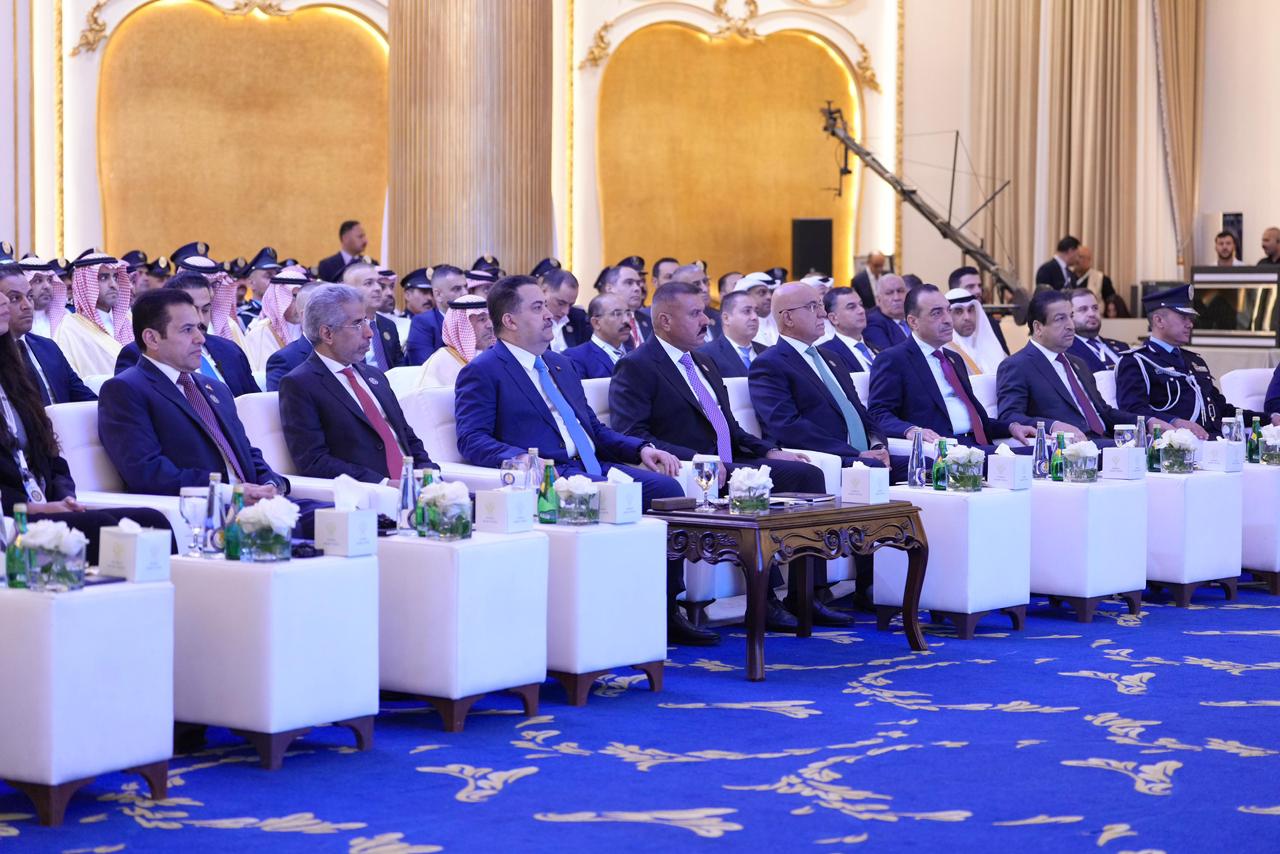رئيس حكومة تصريف الأعمال العراقية محمد السوداني يلقي كلمته خلال افتتاح مؤتمر بغداد الدولي الثالث لمكافحة المخدرات