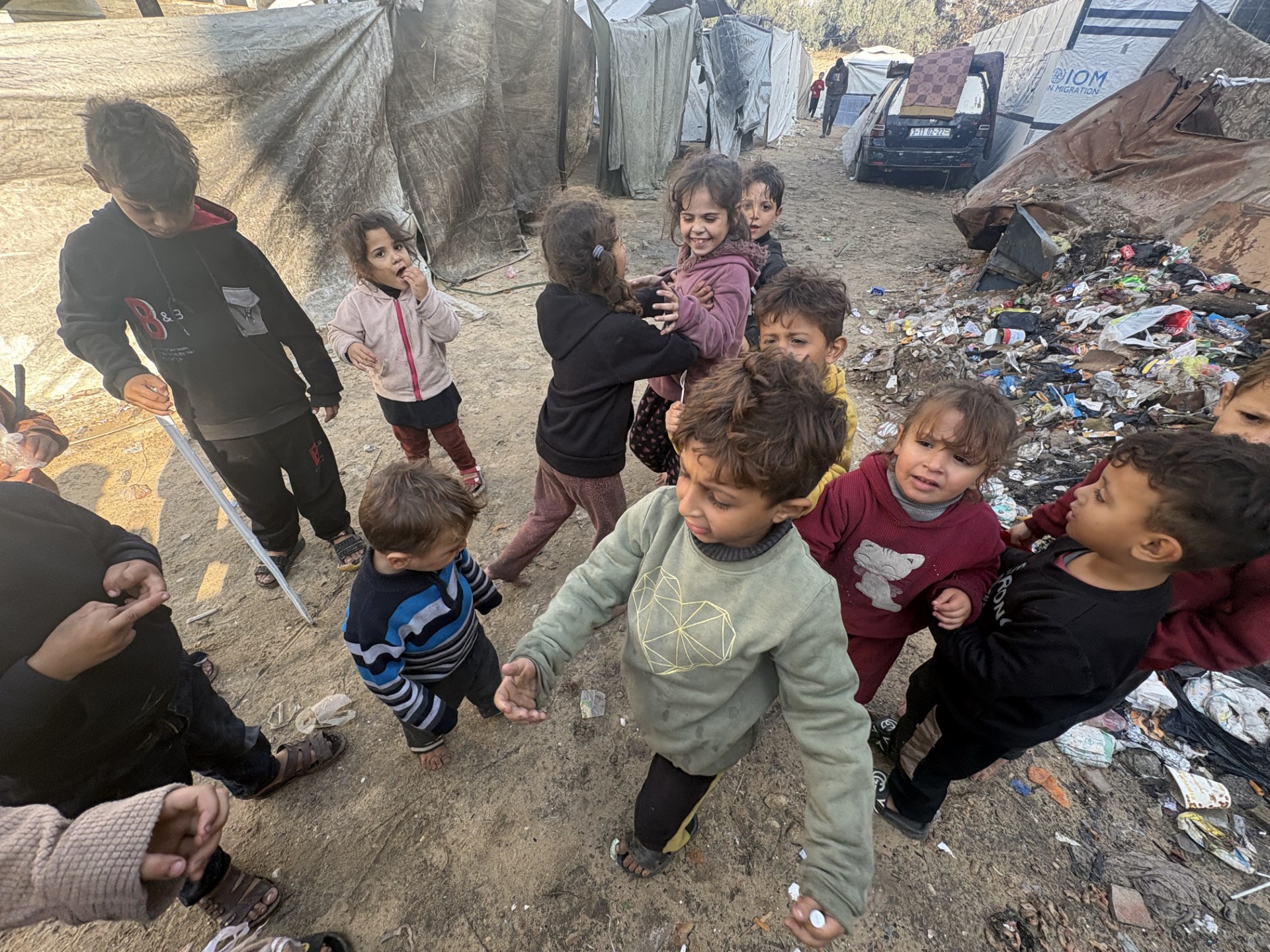 أطفال فلسطينيون في مخيمات النزوح في ظل البرد والشتاء