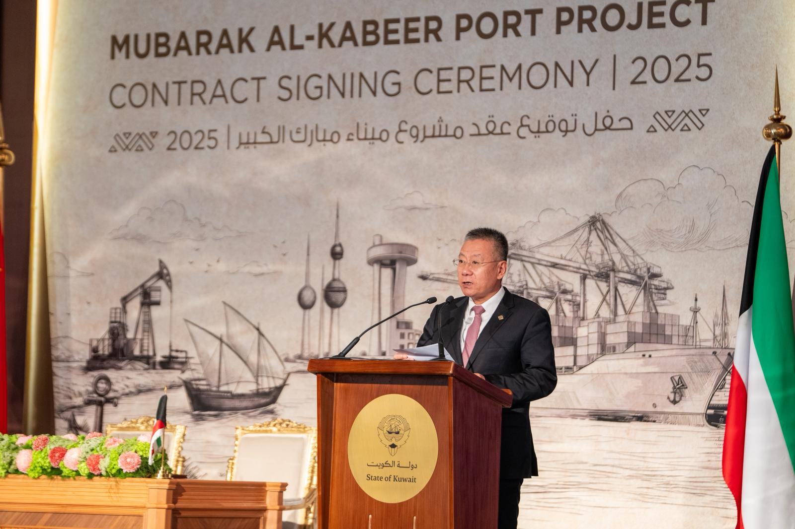 وشهد سمو رئيس مجلس الوزراء مراسم توقيع عقد الهندسة والتوريدات والبناء لمشروع ميناء مبارك الكبير الذي وقعه عن الجانب الكويتي وزير الأشغال العامة الدكتورة نورة محمد المشعان فيما وقعه عن الجانب الصيني نائب رئيس شركة الصين للاتصالات والإنشاءات المحدودة تشن تشونغ.