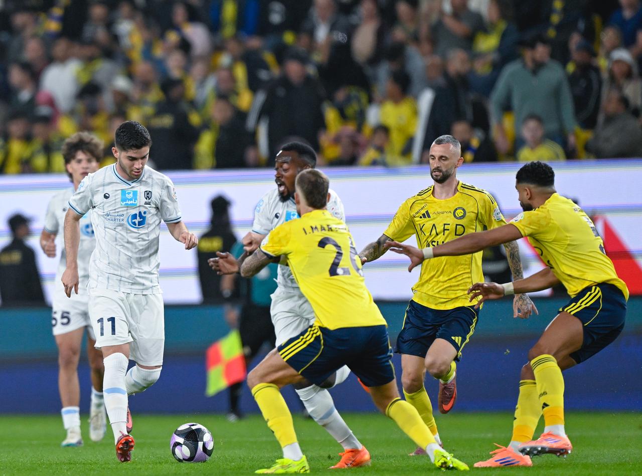 وسجل النجم العالمي كريستيانو رونالدو أول أهداف النصر في الدقيقة 31 قبل أن يعود ليحرز الهدف الثاني لفريقه في الدقيقة الثالثة من الوقت المحتسب بدلا من الضائع للشوط الأول وقبل نهاية المباراة أضاف مواطنه جواو فيليكس الهدف الثالث للنصر في الدقيقة الرابعة من الوقت الإضافي المحتسب للشوط الثاني.