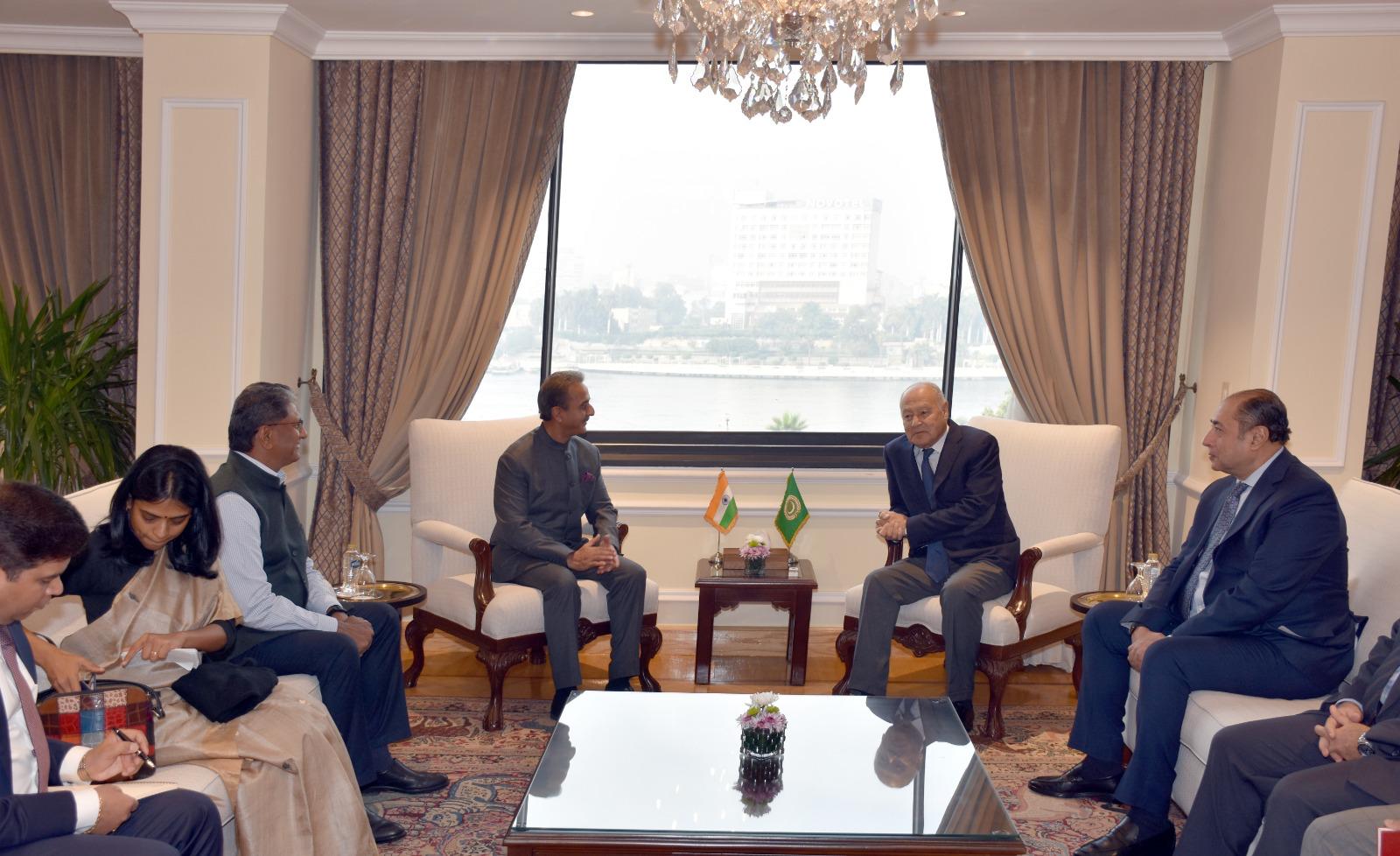 الأمين العام لجامعة الدول العربية أحمد أبو الغيط مع وزير الدولة للشؤون الخارجية الهندي كيرتي سينغ جرى
