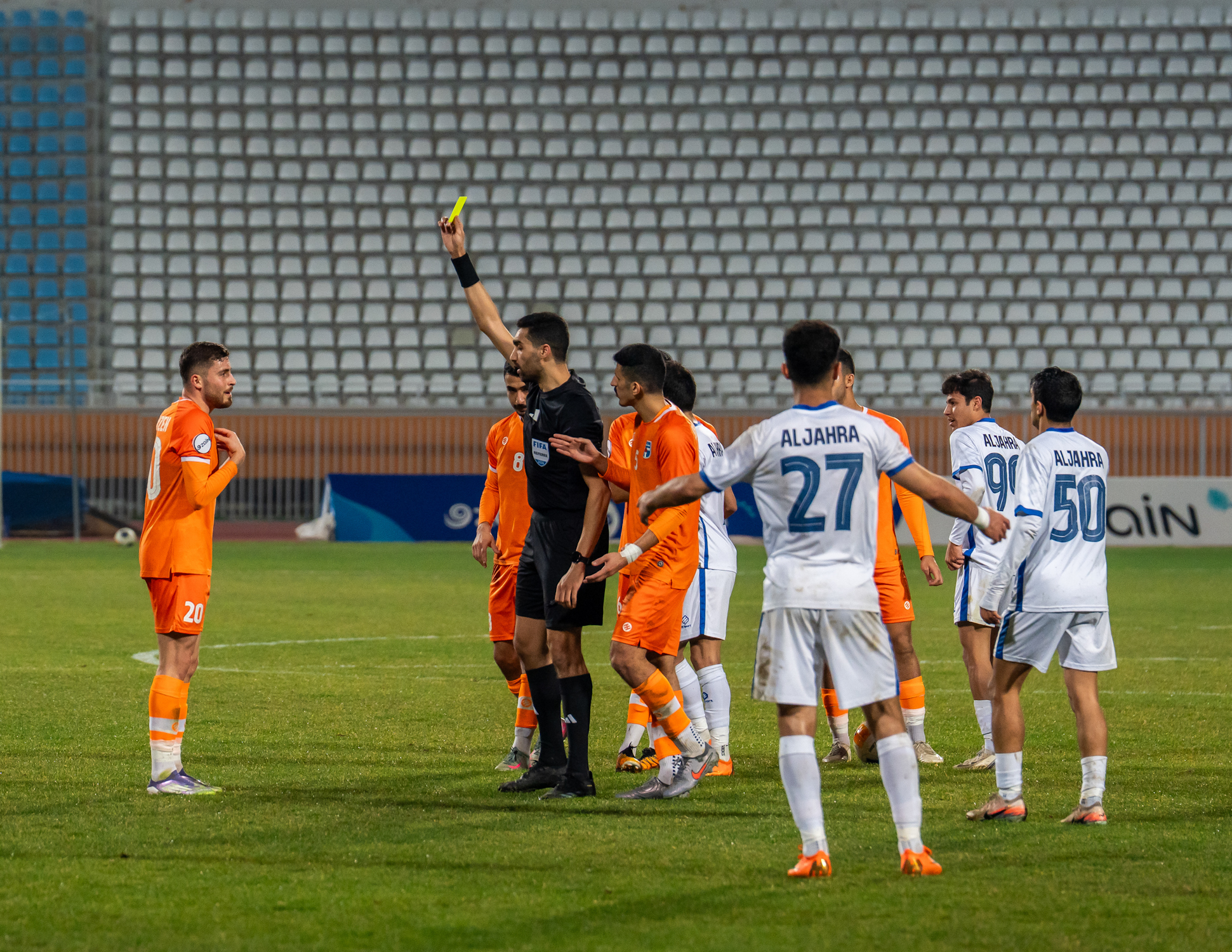 وافتتح لاعب كاظمة علي عزايزة أهداف اللقاء في الدقيقة الـ16 ثم تعادل الجهراء عبر لاعبه فهد زويد في الدقيقة الـ34 لينتهي الشوط الأول بالتعادل.