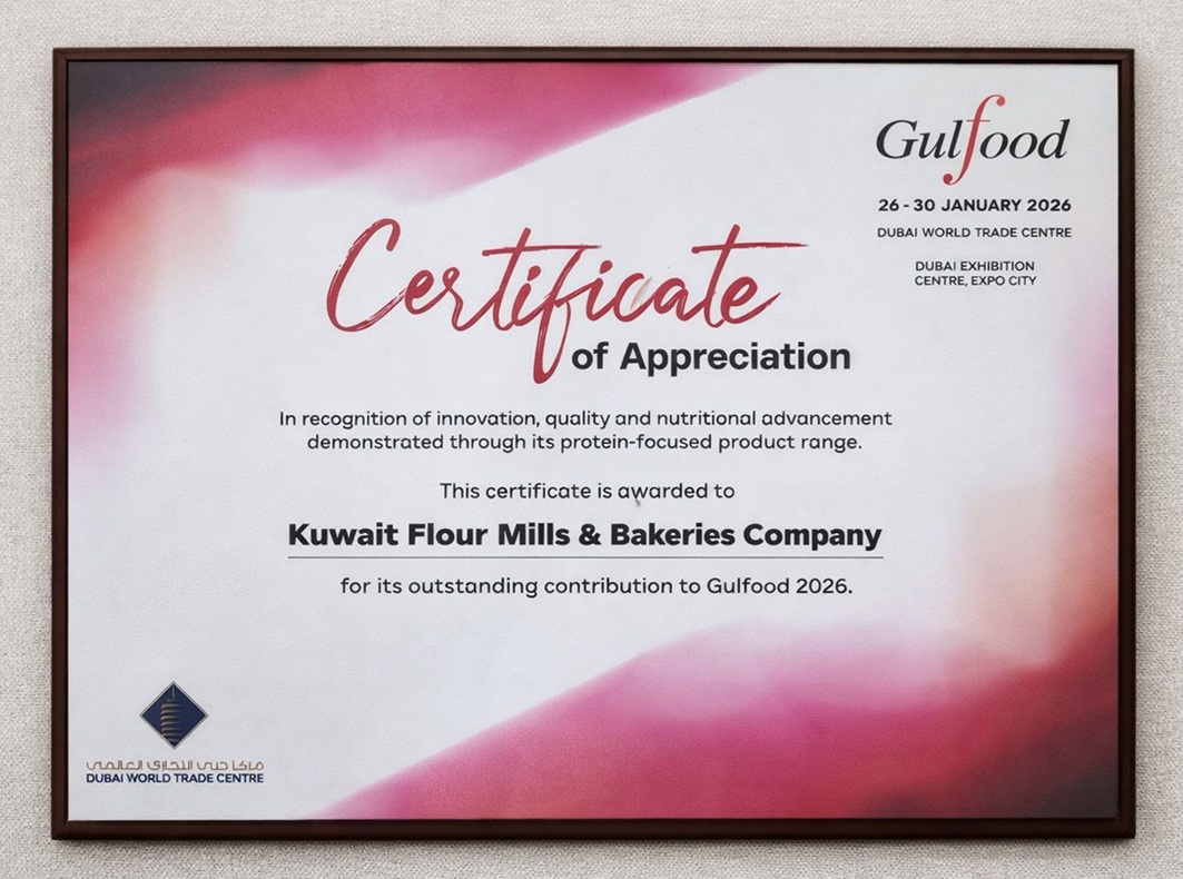 تكريم شركة مطاحن الدقيق والمخابز الكويتية لحصولها على جائزتين خلال مشاركتها في معرض (جلفود 2026) المقام في دبي