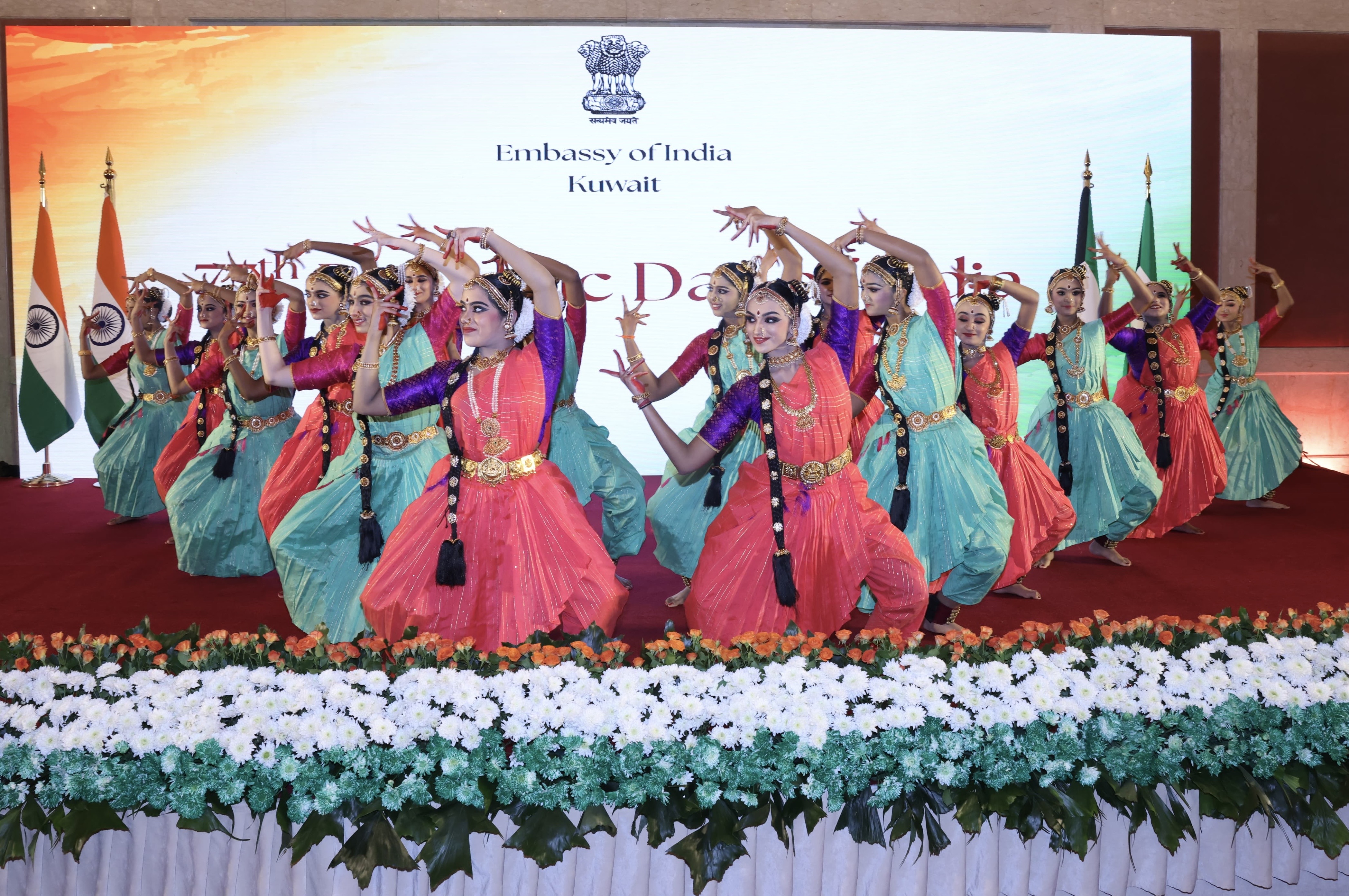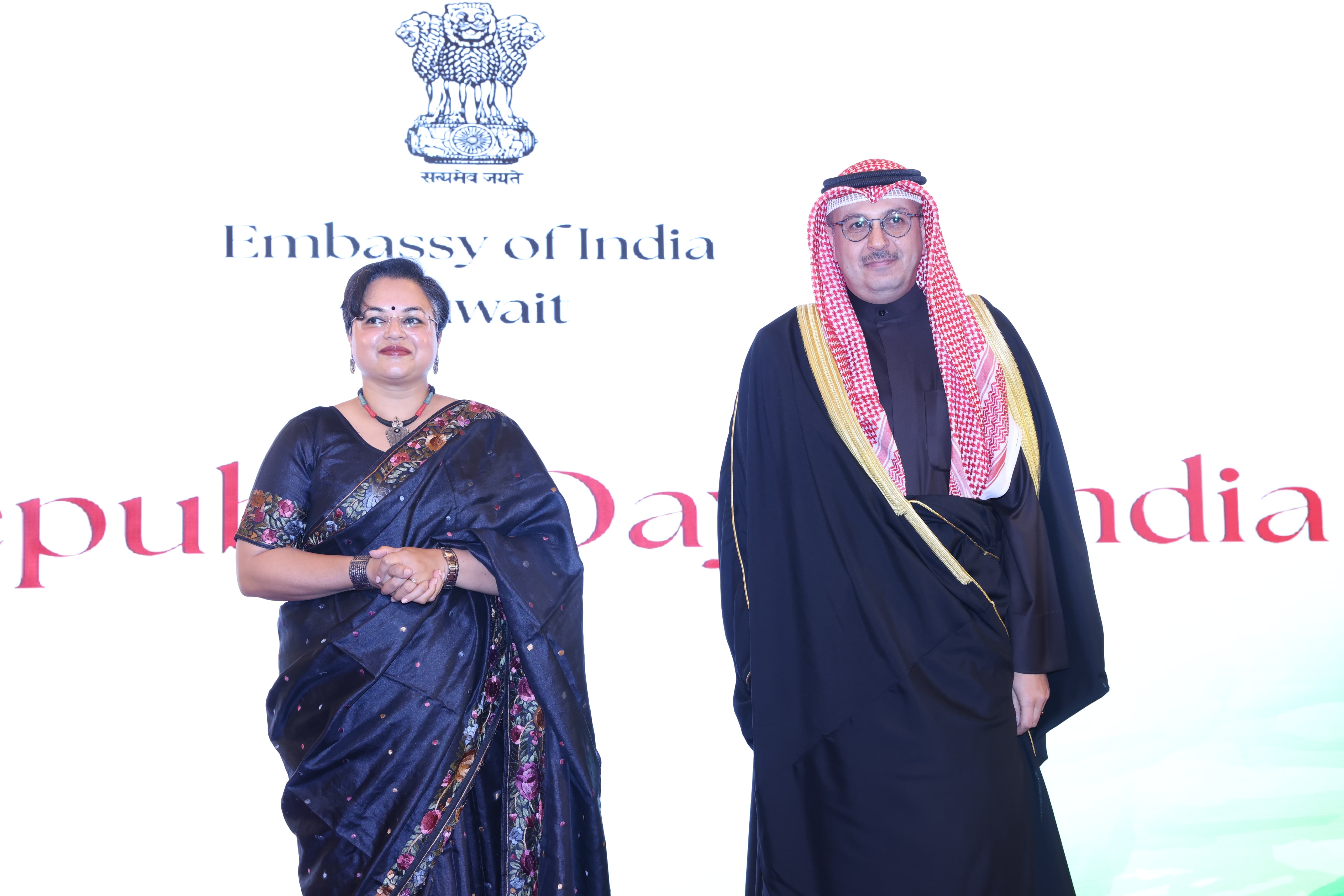 جاء ذلك في كلمة خلال حفل استقبال أقامته سفارتها بمناسبة الذكرى ال77 ليوم الجمهورية الهندية بحضور وزير الكهرباء والماء والطاقة المتجددة ووزير المالية ووزير الدولة للشؤون الاقتصادية والاستثمار بالوكالة الدكتور صبيح المخيزيم ومساعد وزير الخارجية لشؤون آسيا السفير سميح جوهر حيات ووكيل وزارة الدفاع الشيخ الدكتور عبدالله الصباح وعدد من كبار المسؤولين والدبلوماسيين.