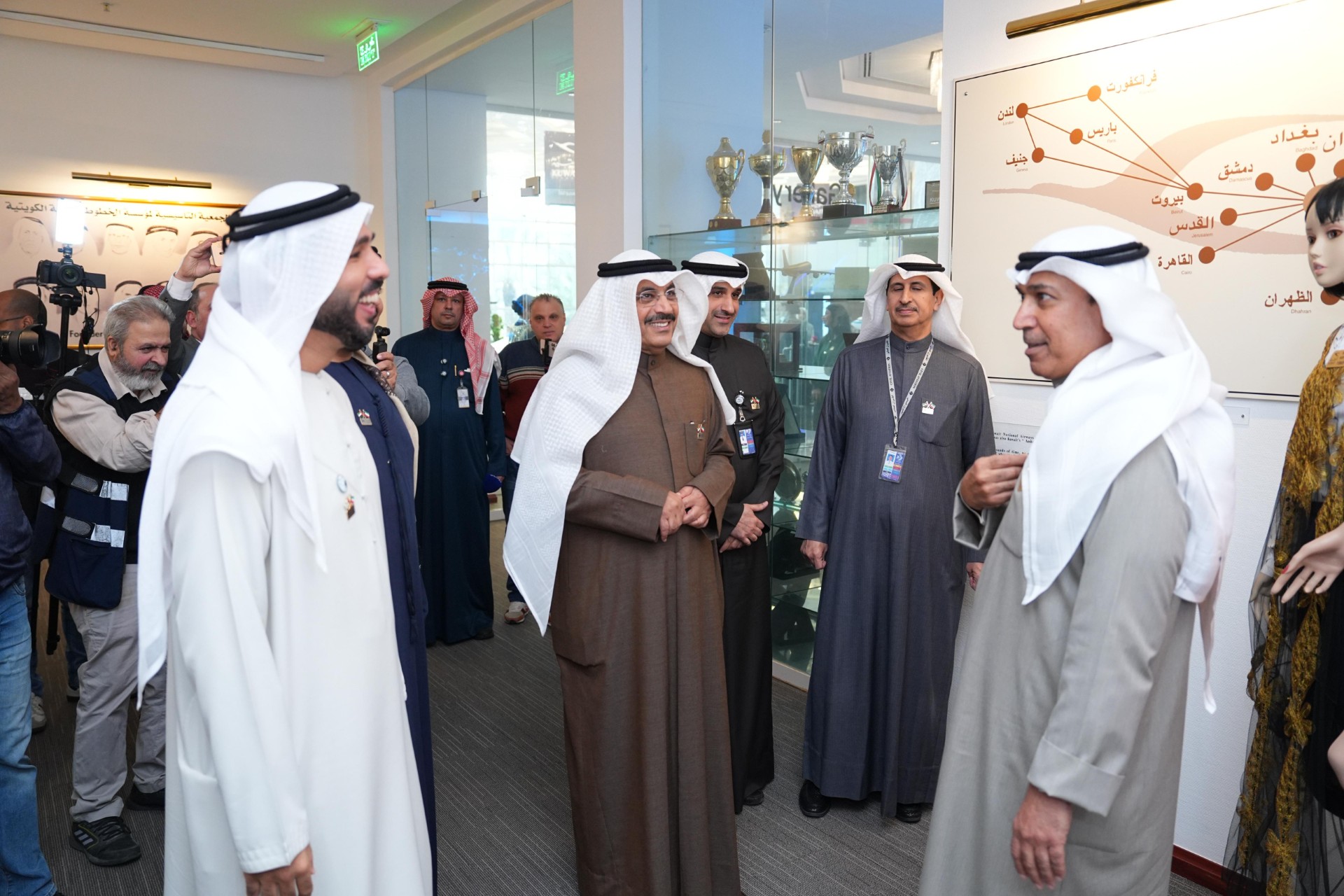 رئيس مجلس الإدارة للخطوط الجوية الكويتية خلال استقباله مسؤولين من طيران الإمارات