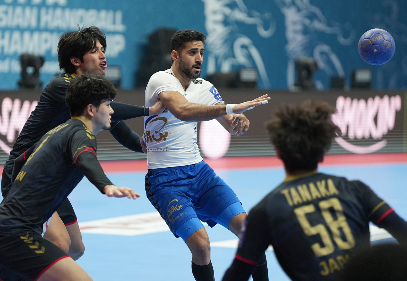 وعلى صالة مجمع الشيخ سعد العبدالله للألعاب الرياضية المغطاة فرض (أزرق اليد) أسلوبه على منافسه الياباني وقدم نصف ساعة سريعة وبتركيز عال ما مكنه من الخروج متقدما بالشوط الأول بنتيجة مستحقة (19 - 16).