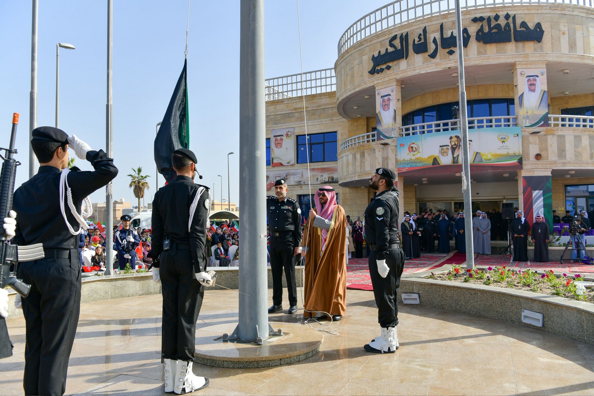 محافظ مبارك الكبير ومحافظ حولي بالتكليف الشيخ صباح بدر صباح السالم الصباح يقبل علم الكويت