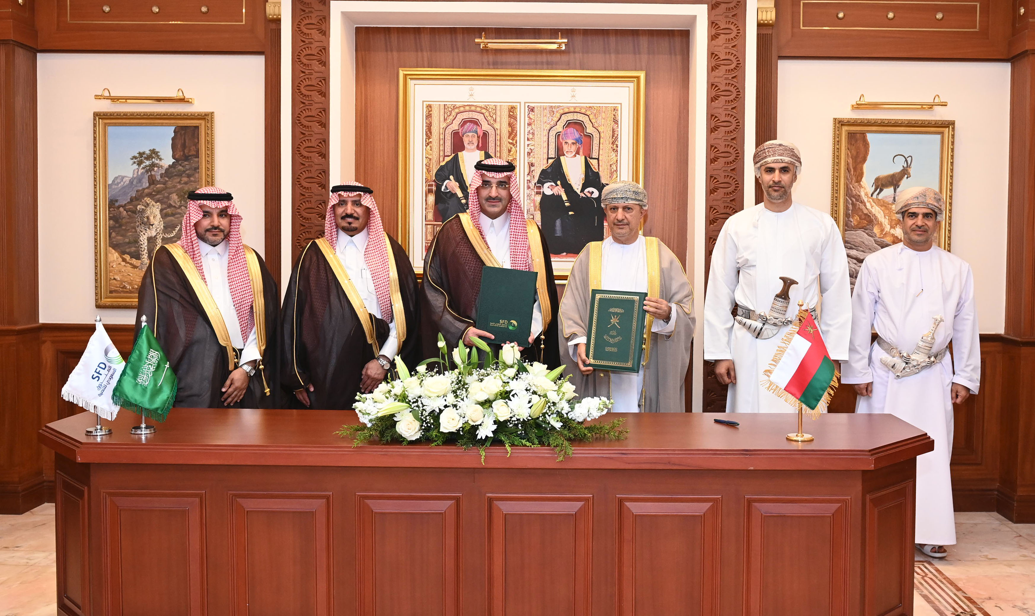 وأجريت مراسم توقيع المذكرة في مسقط حيث وقعها نيابة عن حكومة سلطنة عمان وزير المالية سلطان الحبسي وعن الجانب السعودي الرئيس التنفيذي لصندوق التنمية سلطان المرشد.