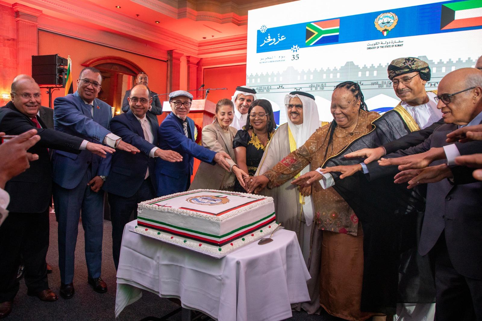 وفي بريتوريا أقام سفير دولة الكويت لدى جنوب إفريقيا سالم الشبلي حفلا بهذه المناسبة قدم خلاله أسمى آيات التهاني والتبريكات إلى مقام حضرة صاحب السمو أمير البلاد الشيخ مشعل الأحمد الجابر الصباح حفظه الله ورعاه وسمو ولي العهد الشيخ صباح خالد الحمد الصباح حفظه الله وسمو الشيخ أحمد عبدالله الأحمد الصباح رئيس مجلس الوزراء حفظه الله والشعب الكويتي الكريم.