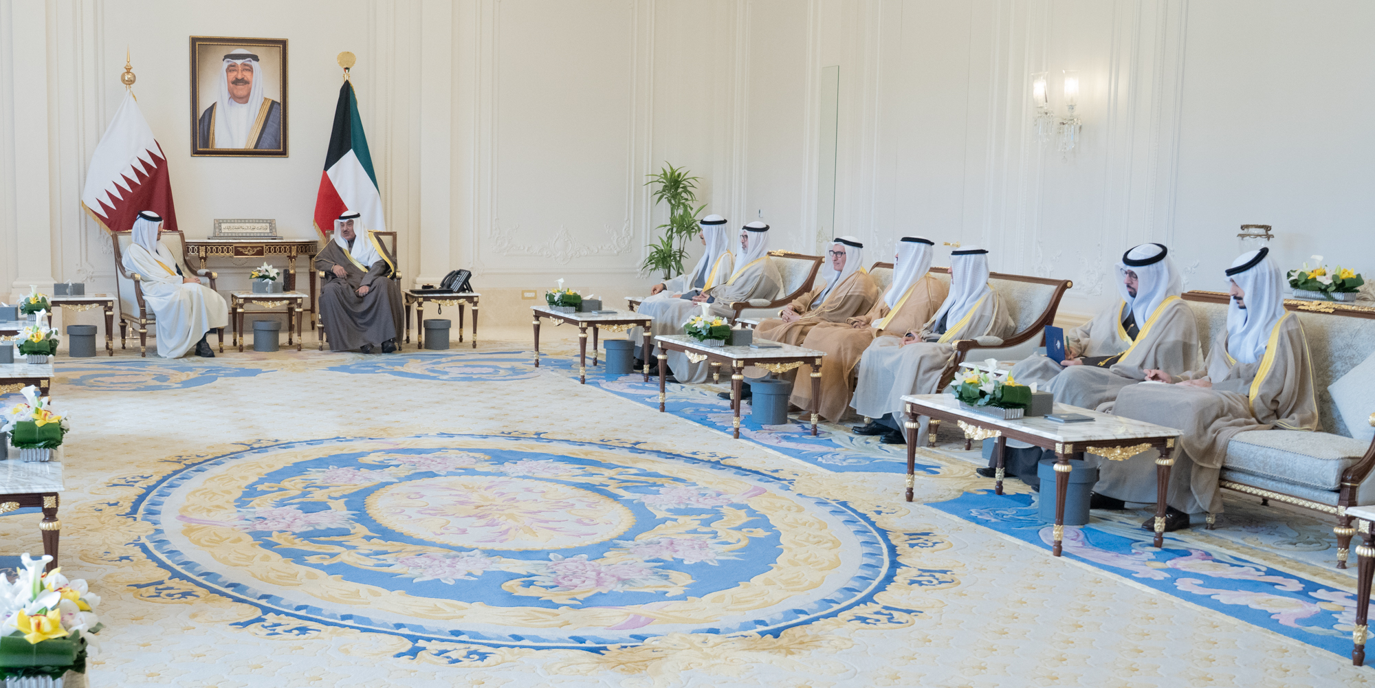 حضر اللقاء معالي رئيس ديوان سمو ولي العهد الشيخ ثامر جابر الأحمد الصباح ومعالي وزير الخارجية الشيخ جراح جابر الأحمد الصباح وكبار المسؤولين. (النهاية) ن و ف