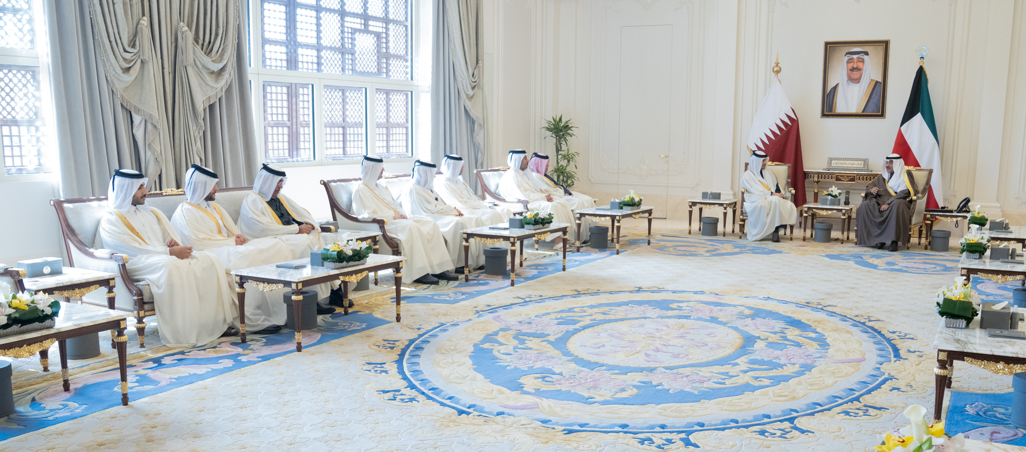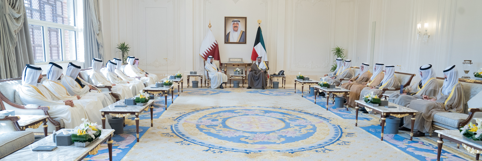 هذا وقد حمله سمو ولي العهد الشيخ صباح خالد الحمد الصباح حفظه الله تحياته لأخيه حضرة صاحب السمو الشيخ تميم بن حمد آل ثاني أمير دولة قطر الشقيقة وأخيه سمو الشيخ عبدالله بن حمد آل ثاني نائب أمير دولة قطر الشقيقة وتمنياته لهما بوافر الصحة والعافية.