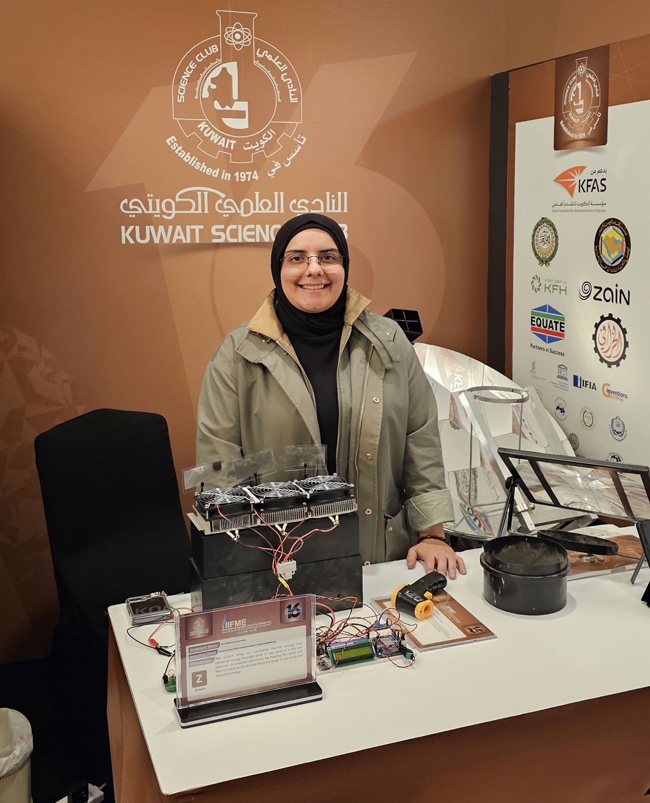 وأشار الديحاني إلى مشاركة المخترعتين فاطمة العنزي ولطيفة الزعبي بجهاز تعليمي مخصص لذوي الإعاقة البصرية يساعدهم على تعلم الرياضيات باستخدام تقنية برايل والتفاعل الصوتي وكذلك المخترع طالب العطار بتصميم طائرة خفيفة الوزن للاستخدام الشخصي تتميز بالكفاءة الهوائية العالية وأنظمة أمان محسنة للتنقل قصير إلى متوسط المدى.