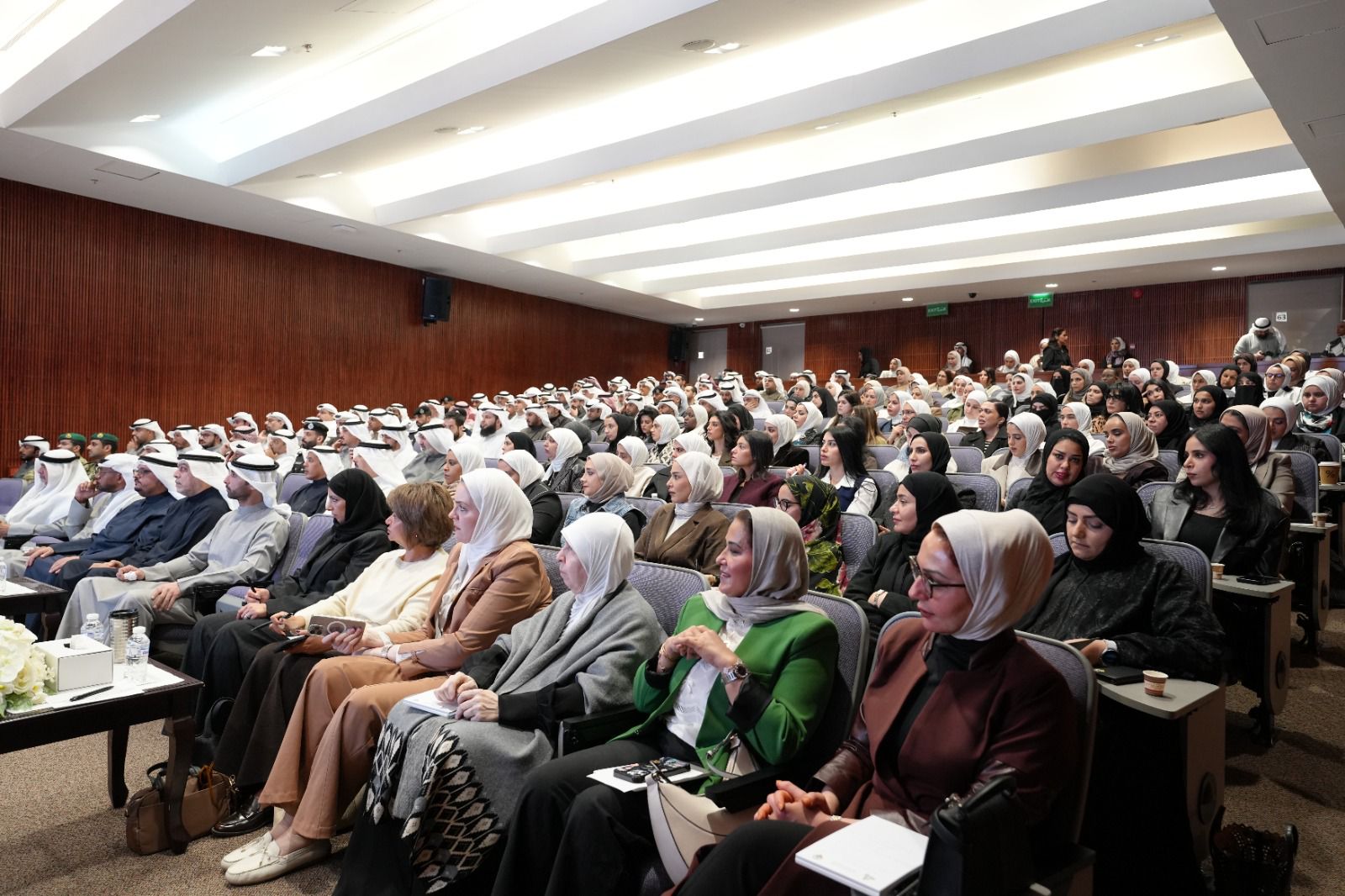 وكيل وزارة مساعد بقطاع البعثات والاجازات الدراسية في ديوان الخدمة المدنية نرجس عبدالرسول خلال الملتقى وبجانبها بتول الريس مراقب المعادلات الاجنبية في وزارة التعليم العالي