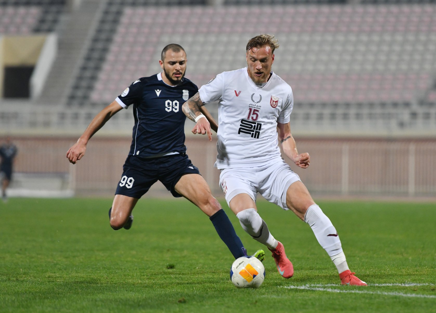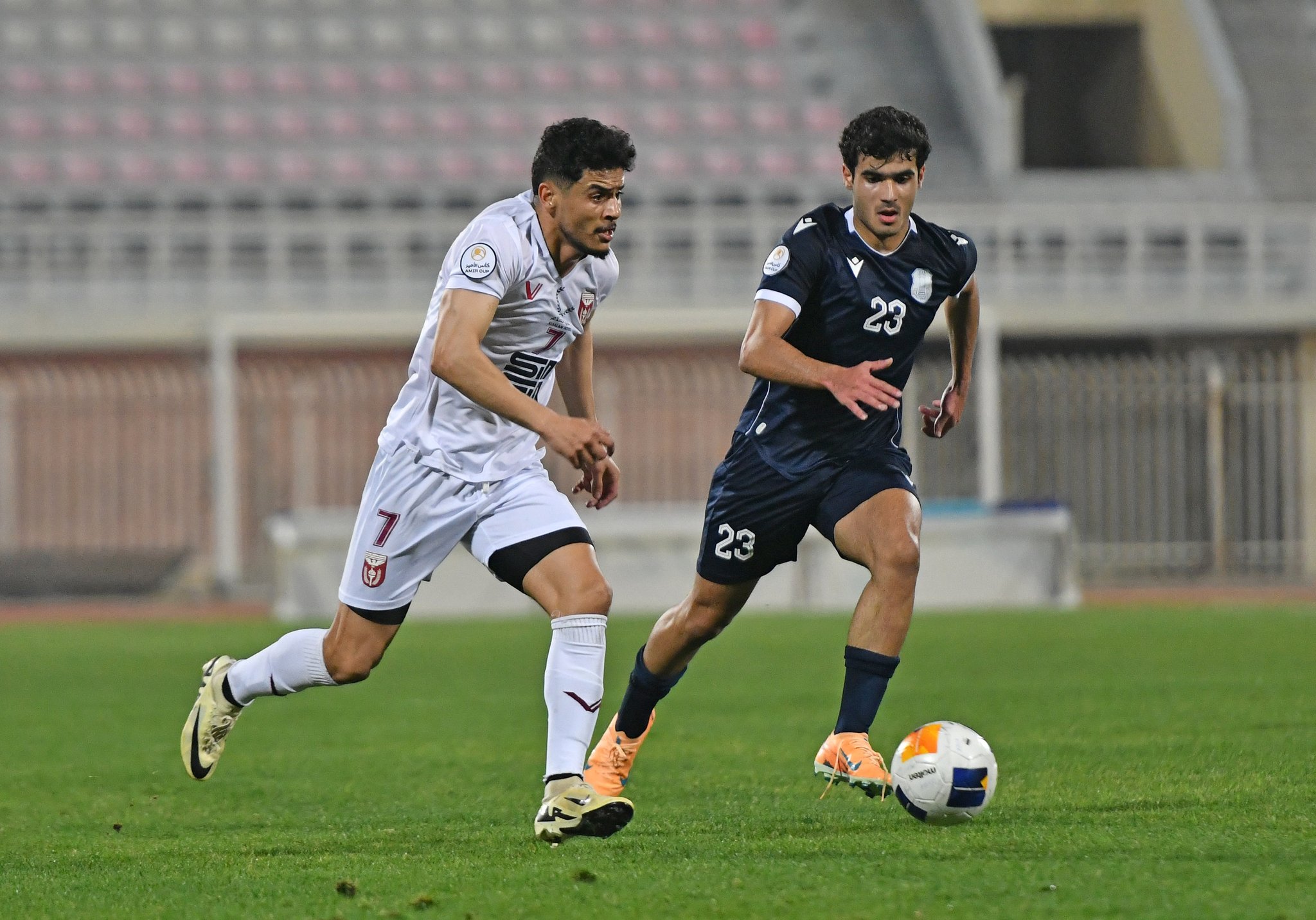 لاعب النصر يحاول اللحاق بلاعب اليرموك لاستخلاص الكرة