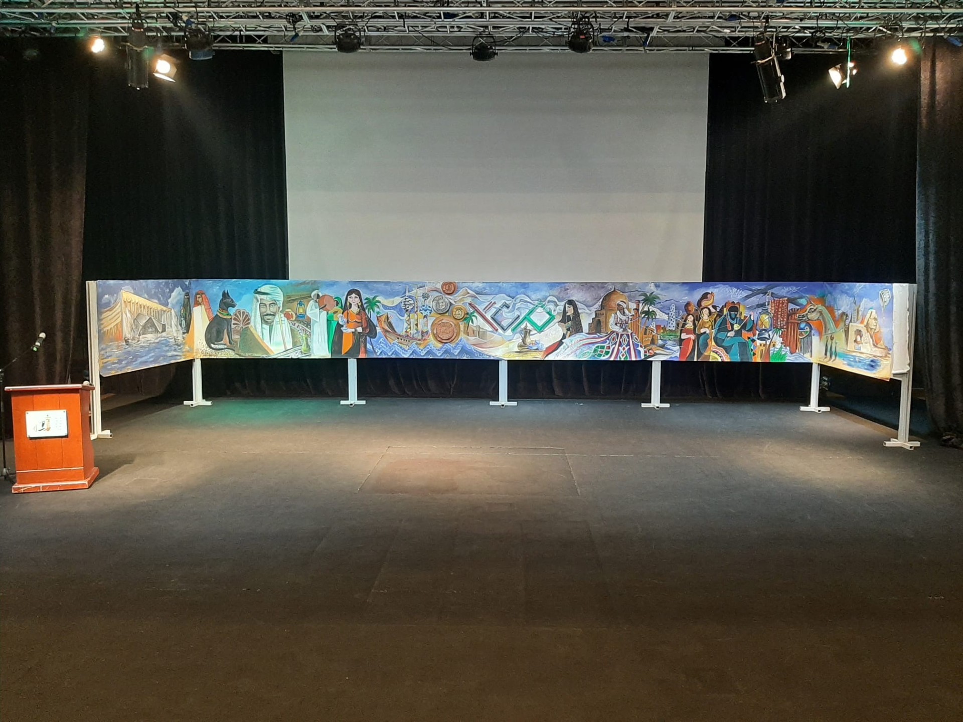 وتضمنت الجدارية أعمالا متنوعة عكست مدارس فنية مختلفة ورموزا بصرية تعبر عن الاعتزاز بدولة الكويت والمحبة الصادقة لها لتكون لوحة جامعة ورسالة فنية تؤكد متانة العلاقات بين الشعبين الشقيقين.(النهاية)