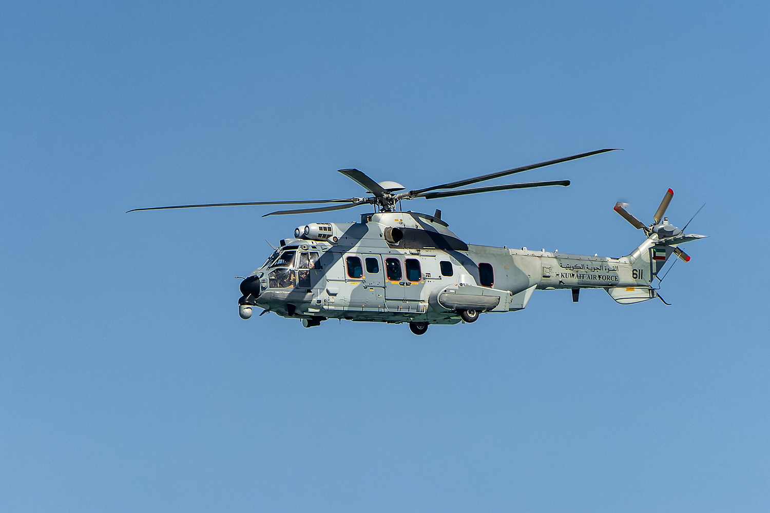 وشارك في العرض الجوي طائرات (أباتشي) و(كاركال) و(سي -130 هيركوليز) وبوينغ من طراز (سى 17 جلوب ماستر 3) إلى جانب المقاتلتين (اف / ايه 18 - هورنت) و(يورو فايتر - تايفون) كما قدمت زوارق البحرية الكويتية وخفر السواحل عرضا بحريا.