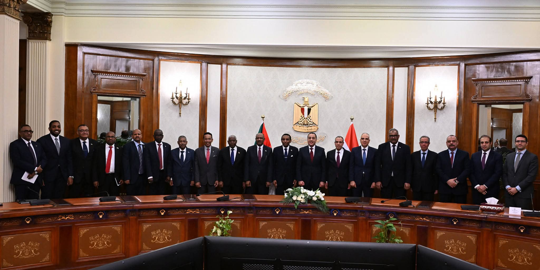 رئيس الوزراء المصري د. مصطفى مدبولي مع رئيس الوزراء الانتقالي للسودان كامل إدريس خلال المباحثات
